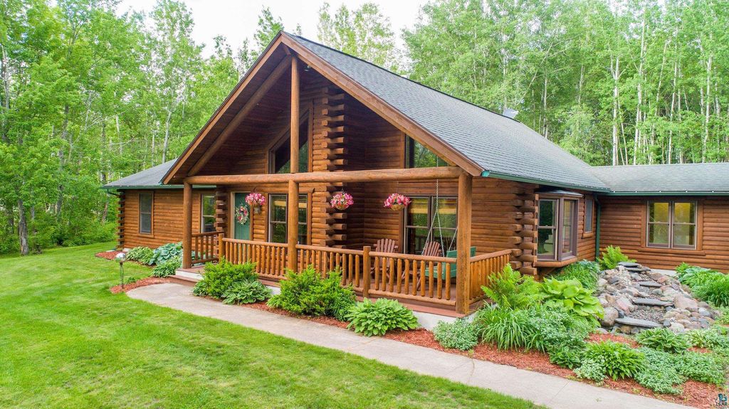 This stunning log home is nestled on 5 wooded acres in Cloquet. Walking into the main floor, you'll be greeted by a bright open feeling home that features vaulted ceilings, a sitting room with a fireplace, a formal dining room, living room with a freestanding fireplace and kitchen with lots of cabinets for storage, updated granite countertops, and a breakfast nook. This level is also home to a full bath, a powder room, all 4 bedrooms, including the primary that has an attached 3/4 bath and a walk in closet with laundry. In the lower level you'll find the family room that features a large, raw edge wood bar perfect for entertaining and a storage room. Outside is where you'll be able to see yourself enjoying this home to the fullest! There is a stone patio with a fire pit, a covered front porch, nice sized deck, a pole building that has a heated workshop and extra space for parking or storage, and an attached garage. All surrounded by beautiful landscaping. Don't miss your chance to see this one for yourself - Come check it out!