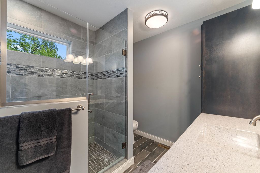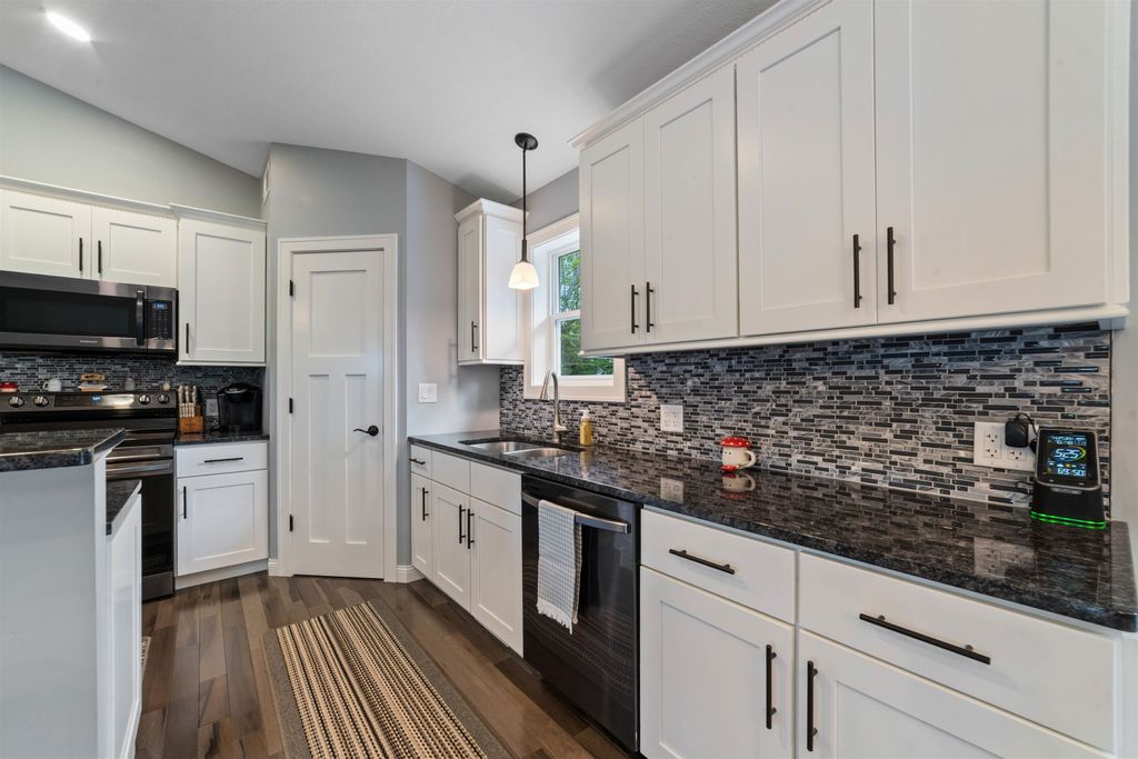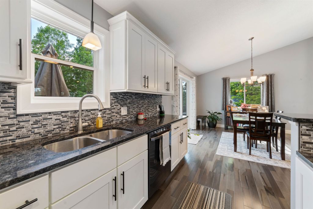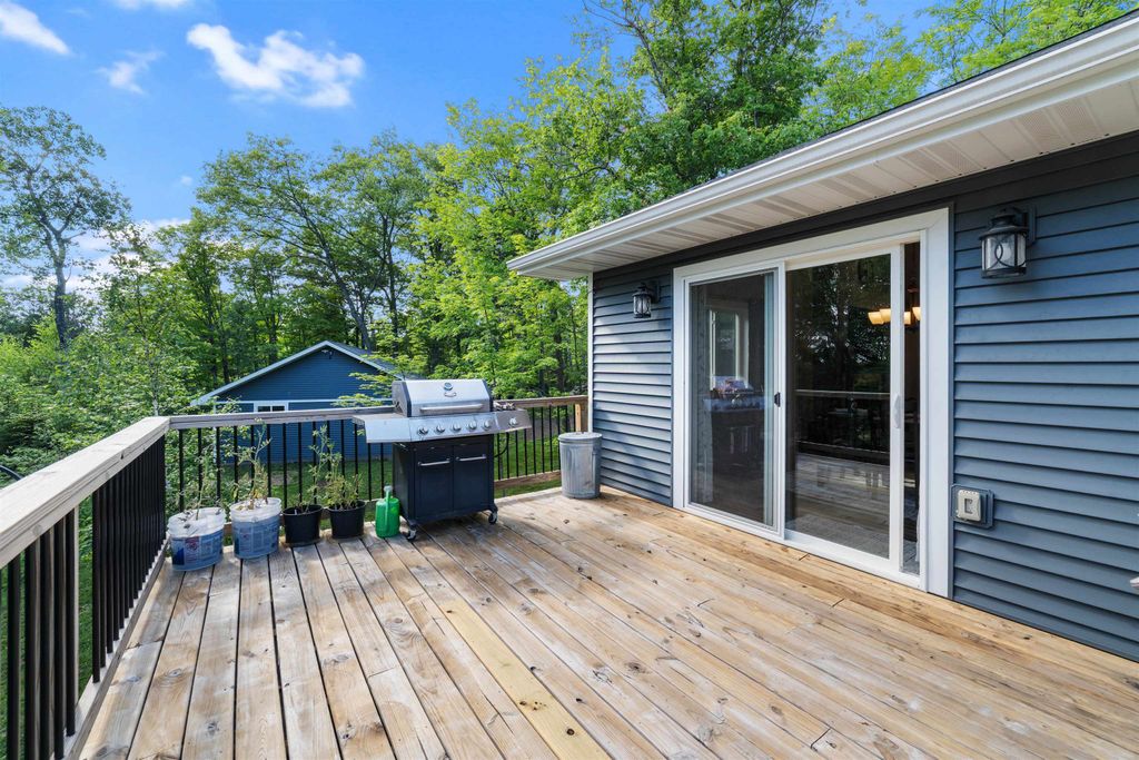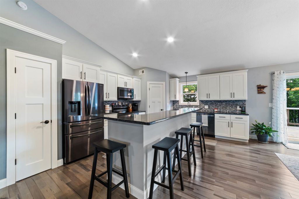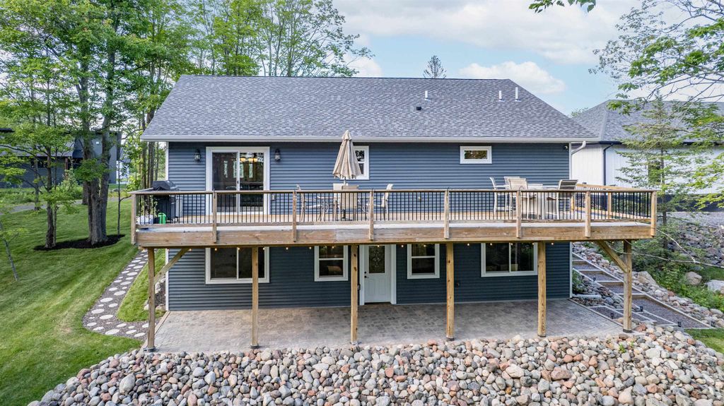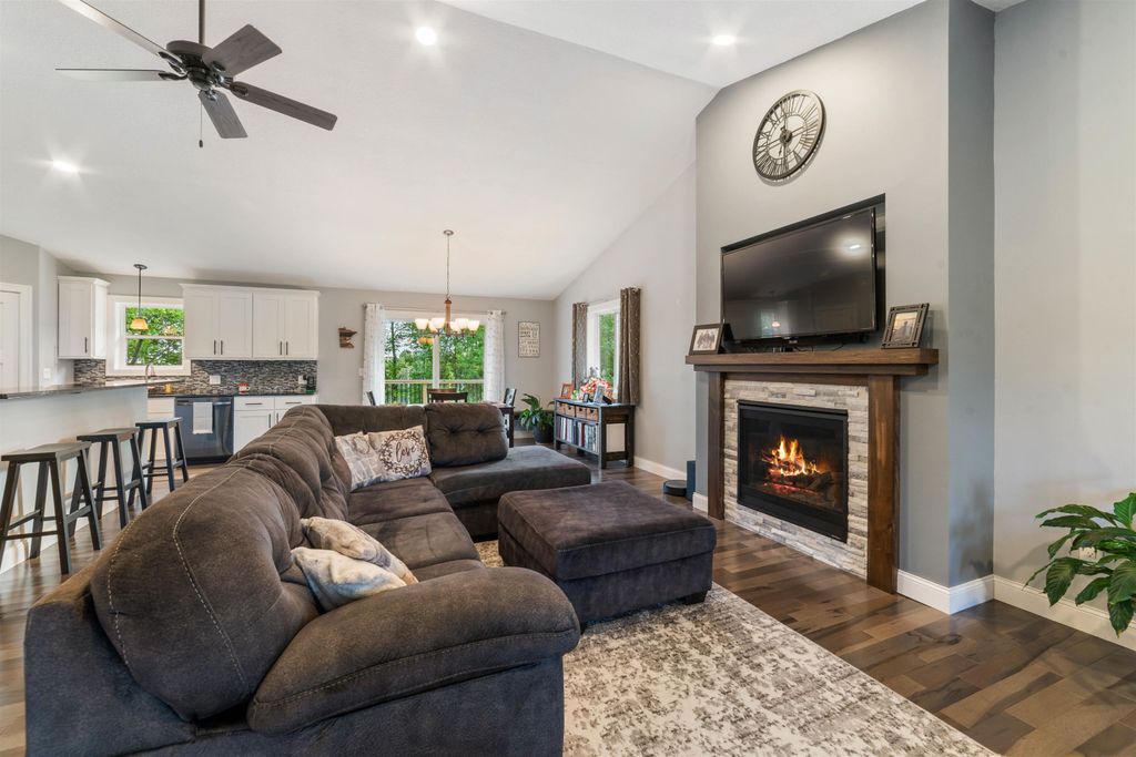 Located in a beautiful neighborhood surrounded by newer, high-quality homes, this meticulously maintained residence offers an exceptional blend of style, comfort, and functionality. Bathed in natural light, the interior showcases stunning solid hardwood floors and an open-concept layout centered around a cozy gas fireplace. The heart of the home is the large open kitchen, perfectly designed for everyday meals and entertaining alike, offering ample space, functionality, and flow. Retreat to the full master suite featuring a spacious bedroom, a luxurious master bathroom with a beautifully tiled walk-in shower, and a walk-in closet enhanced with custom wood cabinetry for elegant and efficient storage. The main level opens to a full-length deck, ideal for outdoor dining or relaxing, while the covered patio below offers a shaded retreat. The expansive lower level boasts a massive recreation room, perfect for hosting gatherings, movie nights, or game days. A true highlight of the property is the garage setup: a heated 2-car attached garage plus a heated 2-car detached garage, which is a rare feature in residential developments and perfect for extra vehicles, a workshop, or storage. Surrounded by meticulous landscaping and enhanced with a whole-house hardwired security system, this sun-filled home checks all the boxes. Don't miss your opportunity to own this rare gem in one of the area's most desirable neighborhoods. Schedule your private showing today!
