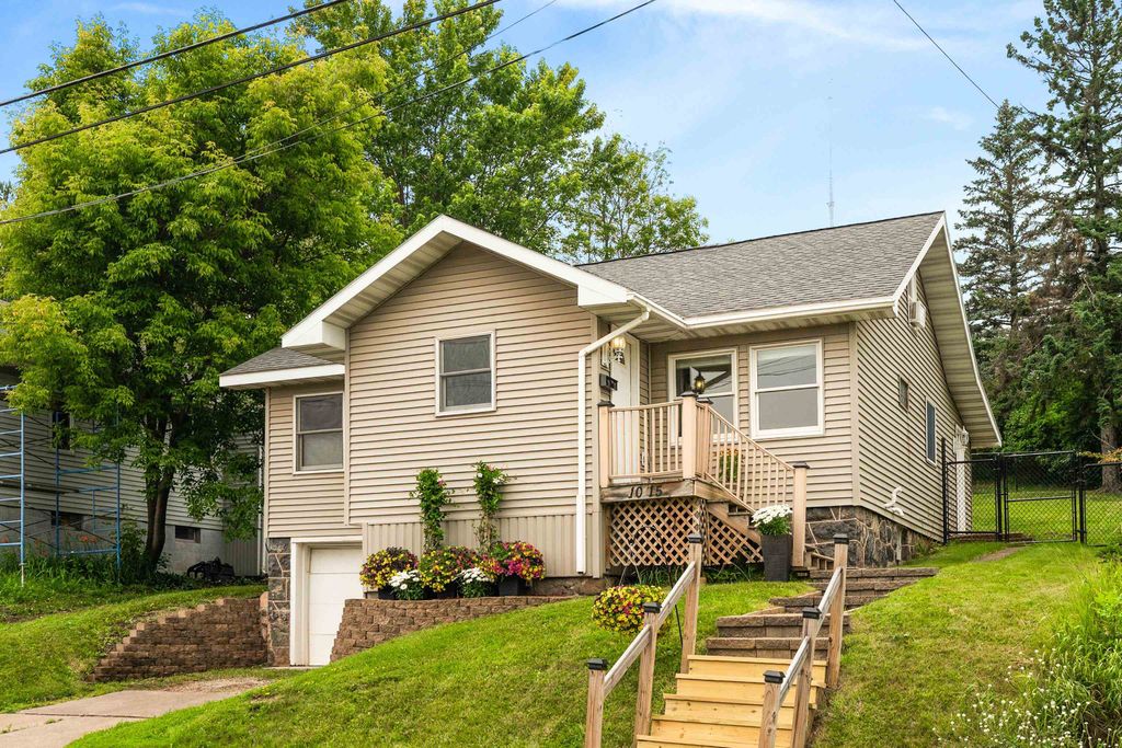 Contemporary charm! This open concept features a luxurious wooden staircase as the central focal point. The living space, dining space and kitchen surround this visual anchor to create an airy and welcoming space. Enjoy the convenience of two main-level bedrooms and a full bathroom with laundry. The blue bedroom is the biggest with peek-a-boo views of the lake, and the yellow bedroom overlooks the private fenced yard. Need extra space? Follow the wooden staircase to the finished loft space that functions well as an office, play-space or den, and then to the flexible room upstairs. There are generous entryways from both the front and side door leading to the large, private, and fenced backyard with plenty of room for entertaining around the custom fire pit. Parking is easy with an off-street parking spot and 1-stall tuck-under garage. Don't miss the newer 200 amp electrical and cute little potting room in the basement! Located just moments from Twin Ponds, Duluth Traverse, Superior Hiking Trail, Enger Tower, and Skyline Parkway, you'll have easy access to Duluth's natural beauty, including hiking and mountain biking trails around the corner. Enjoy contemporary living in this Observation Hill beauty! Open House on Friday July 25th from 4-6pm!