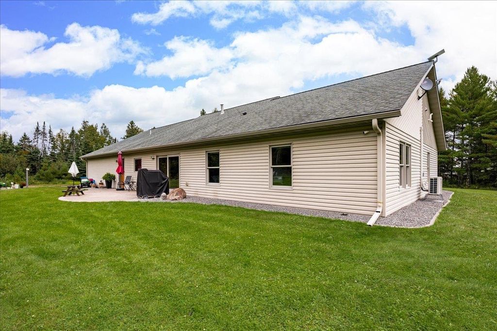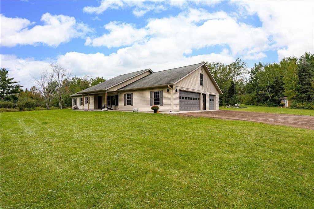 Welcome to this beautifully maintained 3-bedroom, 3-bath home sitting on just over 15 acres. There is room to hunt or just roam on your own manicured trails. Inside you will find one level living at its finest with central air and fresh paint through out and new mechanicals. The open-concept design is ideal for both everyday living and entertaining with a custom 2 sided gas fireplace, kitchen has center island and vaulted ceilings. Large primary suite with soaking tub and extra closet space. The 3-car garage provides walk up attic storage and plenty of room for vehicles & toys. Enjoy the patio, covered porch and expansive yard. And there is also a sauna. Whether you're hosting family gatherings, starting a garden, or just enjoying the peace and quiet, this property offers privacy only minutes from town.
