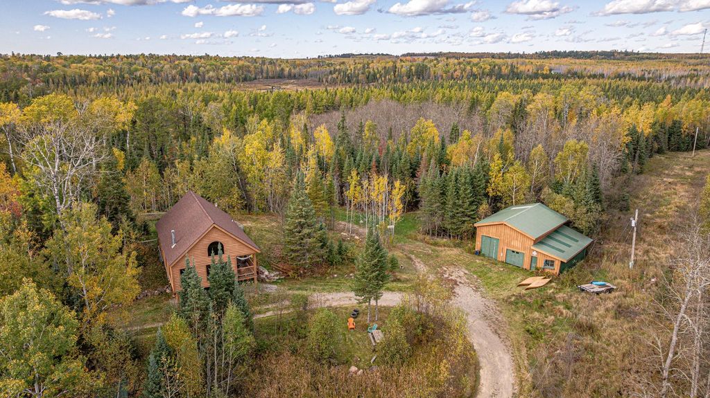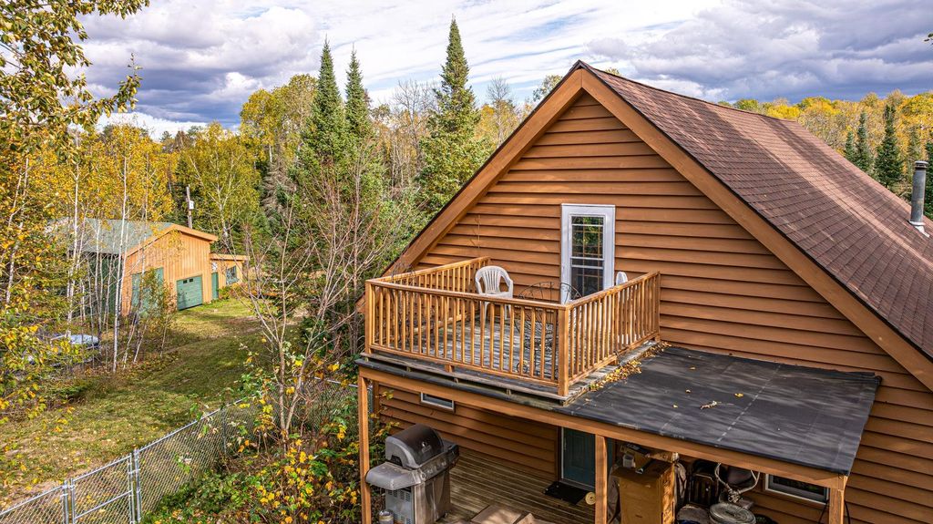 Country Home in Beautiful Ely, MN. Escape to your own private retreat in the Northwoods! Nestled among towering trees outside of Ely, this inviting country home offers the perfect blend of rustic charm and modern comfort. Step inside to find warm wood floors throughout, and a bright, open loft that fills the home with natural light. Floor-to-ceiling windows showcase the serene, wooded views, creating a peaceful, treehouse-like atmosphere year-round. Whether you're sipping coffee on the porch, enjoying the quiet sounds of nature, or entertaining by the fireplace, this home is a true Northwoods haven. Features include, Open concept living with vaulted ceilings, Spacious loft with a bedroom and deck, sitting area and charming bathroom with a clawfoot tub. Floor-to-ceiling windows with stunning forest views, wood floors throughout Surrounded by mature trees on a private lot. Outside you will find a partially fenced area, an electric sauna for those winter nights and plenty of space to roam. There is a huge barn that is added storage for boats, camper, cars you name it. Just down the road is the deeded access to white iron lake, it is a foot trail to the lake. Perfect as a year-round residence, weekend getaway, or vacation rental. Buyer's agent to verify all measurements. Septic system new in 2024.