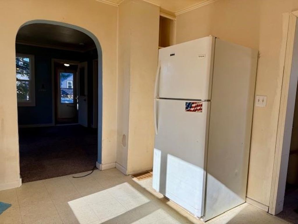 Step into this charming 1-bedroom home offering convenient main-floor living and a bright, cheerful eat-in kitchen. Enjoy the ease of a main-floor laundry and a spacious bathroom featuring a relaxing jet tub and shower. The home has been well cared for, featuring newer vinyl windows, vinyl siding, gutters, and maintenance-free exterior. The basement has been lined and waterproofed with a special membrane system and includes a sump pump with backup battery for extra peace of mind. A newer gas forced-air furnace and water heater add efficiency and comfort. Outside, you'll find a sturdy back porch with ramp access, a partial privacy fence, and a handy shed for yard tools. Located close to downtown, schools, and local amenities, this property is perfect for someone looking for low-maintenance living. All it needs is your personal touch with paint colors and carpet to make it your own!