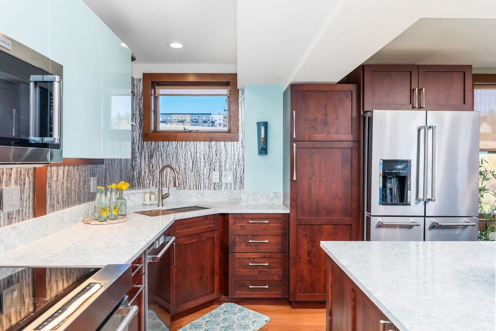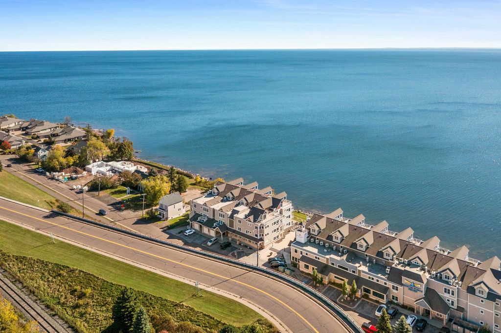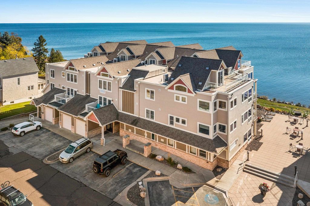 Experience the ease of lakefront living in this simply elegant & updated 2-bedroom, 2-bath condominium situated on the stunning shores of Lake Superior. Facing East, this coveted corner unit captures every sunrise and the shimmering morning light over the water. Sip coffee on your covered balcony overlooking the view. Located within a well-established and secure condo community"”separate from but adjacent to Beacon Pointe Resort"”you'll enjoy peaceful residential living with the added benefit of resort-style amenities including access to the indoor pool, hot tub, and fitness center. Step inside to a thoughtfully remodeled kitchen designed to bring the "outside in" with vibrant touches, a striking resin backsplash, quartz countertops, center island, and top-of-the-line KitchenAid stainless appliances. The open-concept dining and living spaces are ideal for entertaining, featuring a cozy gas fireplace and sliding doors that open to a covered porch with sweeping lake views. The Primary Suite offers a private balcony overlooking the lake, a walk-in closet, and a stunning tiled bath with 16" x 16" tile flooring, dual quartz vanities, and a walk-in tiled shower. The second bedroom and bath provide comfort for guests or a perfect home office setup. Enjoy the rare convenience of two heated underground parking spaces plus a private storage area"”keeping your vehicle warm through the Duluth winters. From your front door, stroll or bike the Lakewalk, take a refreshing dip in the pool or Lake Superior itself, and unwind knowing exterior maintenance is all taken care of for you. Whether you're seeking a full-time residence or a weekend escape, this lakefront condo offers the best of Duluth living"”sunrises, water views, and the effortless charm of maintenance-free comfort.