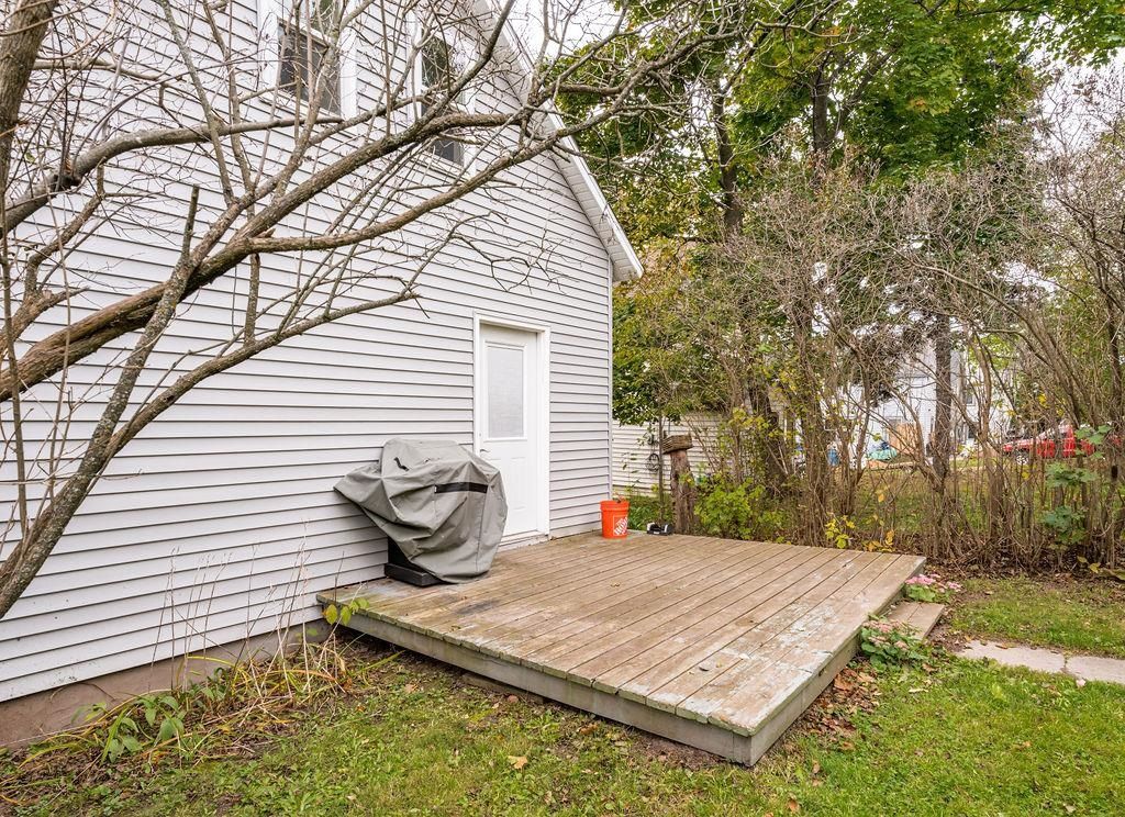 Check out this Charming Expansion Bungalow that is situated on a double lot and has plenty of updates throughout! Step inside to a bright and welcoming Living Room that opens up to a formal dining room - great for entertaining! The kitchen now includes two new pantry cabinets for added storage and the main floor also features a bedroom with two closets, and a Brand New full bath. New tub, tile, vanity, and flooring! Upstairs you will find a VERY spacious Primary Bedroom with LVP flooring, and an additional nicely sized bedroom. The clean, walk-out basement offers great storage space. Outside there is a two stall detached garage with a BONUS workshop! Additional features include: a rear deck, large side yard (extra lot), maintenance free decking on the front porch, and a brand new roof!