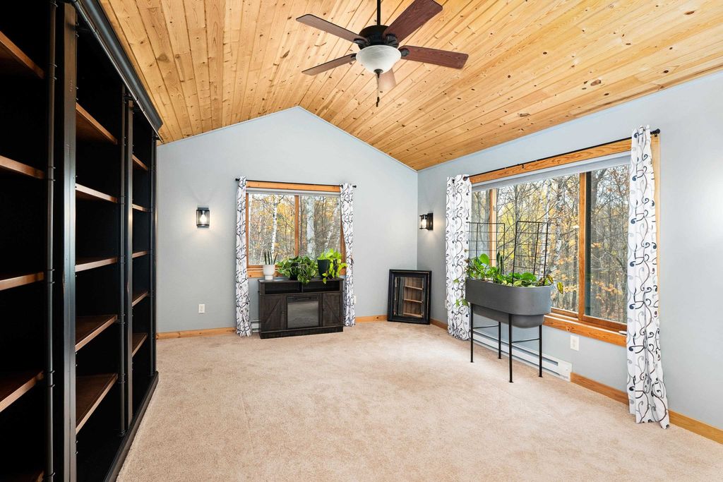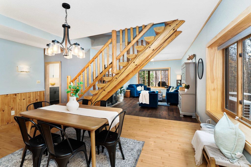 Welcome to this stunning 1950 split log-sided home, perfectly situated on a spectacular 2.28-acre corner lot near Pike Lake! Walk into what is like owning a BRAND NEW HOME! Every room has an update or a remodel throughout! With 4+ bedrooms, 3 baths, 3 fireplaces, 2 Primary Bedrooms (one on the main level!) and 2 decks... this home has it all! Step inside to a brand new, high-end kitchen featuring quartz counters, custom cabinetry, and premium appliances "” ideal for the inspired home chef! Every detail is here from the custom farm sink, roll out drawers, pasta filler, organizing station...Also, on the main level, enjoy a newly remodeled pantry across from the kitchen! A surprisingly open floor plan with so much to offer with a formal dining area, formal living room, rec room with wet bar area near sliders to the deck! The main floor ensuite is perfectly situated for a guest suite or your private corner of the house! Upstairs, you'll find another ensuite bedroom, vaulted and updated! A spacious rec area with an attached office or bedroom is bright and inviting. The finished lower level offers even more room to relax, play, or host guests with fireplace, game area and flex space. So much is new with flooring throughout the main level, a brand new tankless water heater, paint, some carpet, toilets... THIS IS A MUST SEE! Another bonus is the oversized 3-car garage providing space for vehicles and hobbies alike. Truly a home you have to view to appreciate! What a location, What a HOME! With 4+ bedrooms, stunning finishes, and a private, wooded setting "” this property captures the best of Pike Lake living: peaceful, spacious, and absolutely move-in ready!