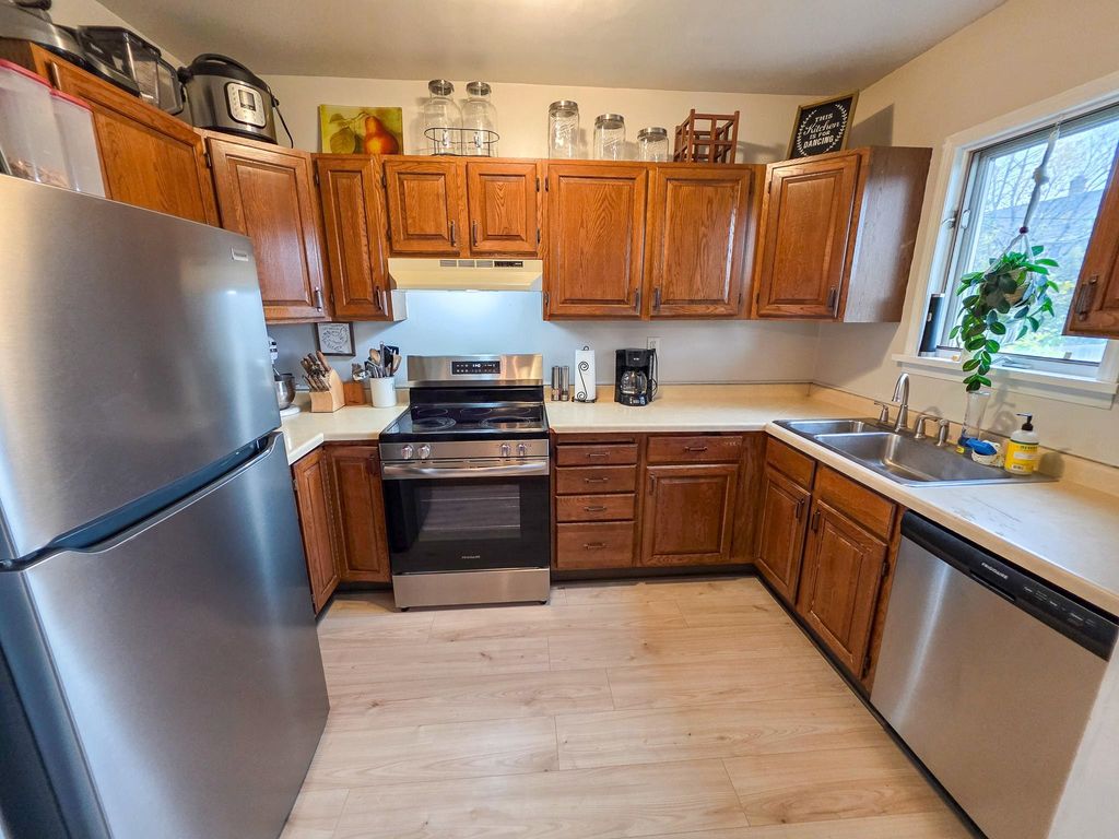 This 2 bedroom 1 full bathroom house is well maintained and is just minutes away from everything you might need with a great layout. The main floor contains the living room, formal dining room, and a great efficient kitchen with new appliances and flooring (2025). The upstairs has 2 big bedrooms with good closet space and a newly remodeled bathroom (2024)! The back yard features 3 off street parking spaces or use one for your boat or trailer, a brand new 8x10 lofted shed (2025), and a nice deck to sit and relax on.
