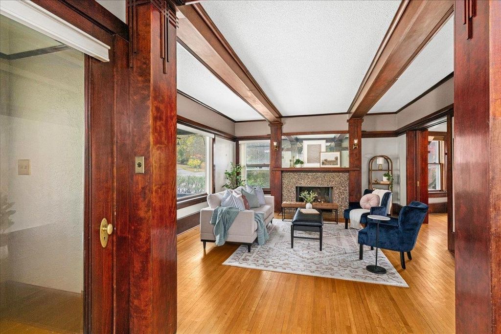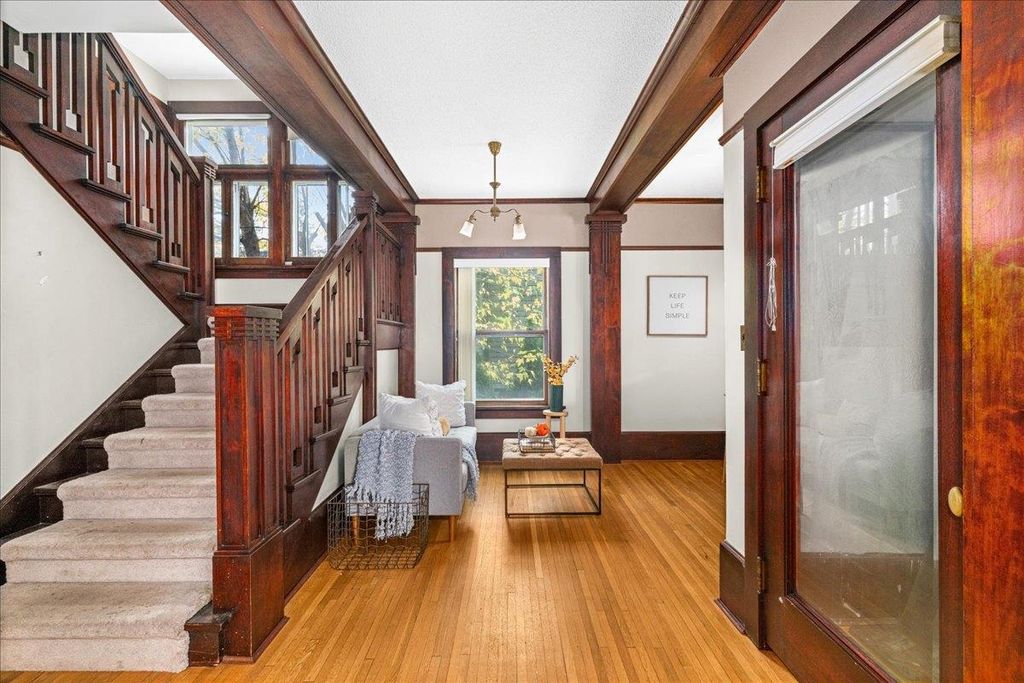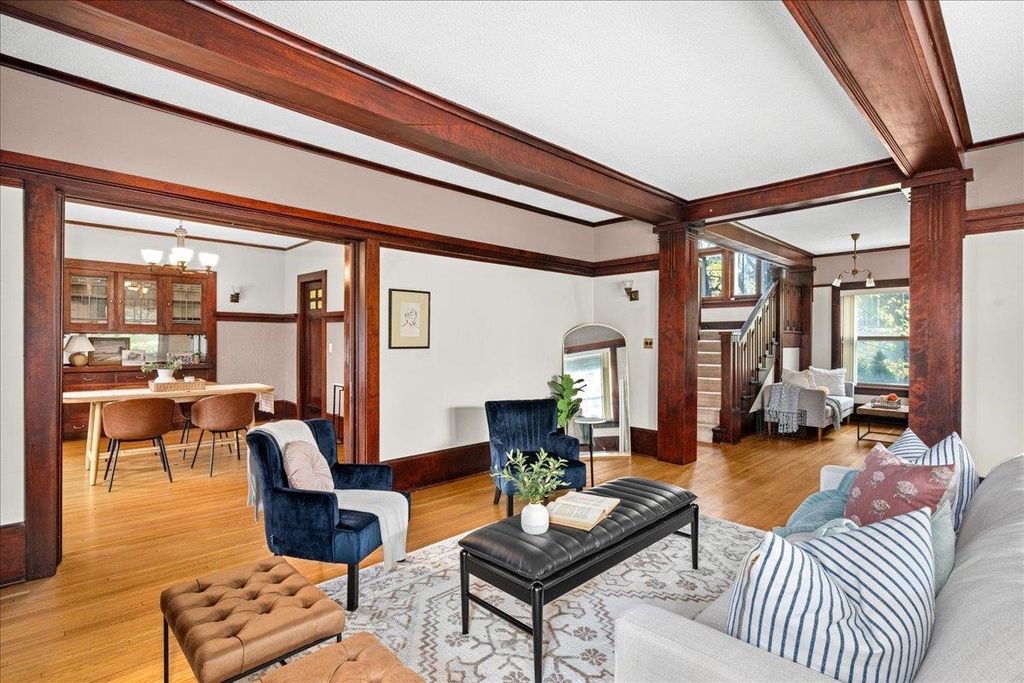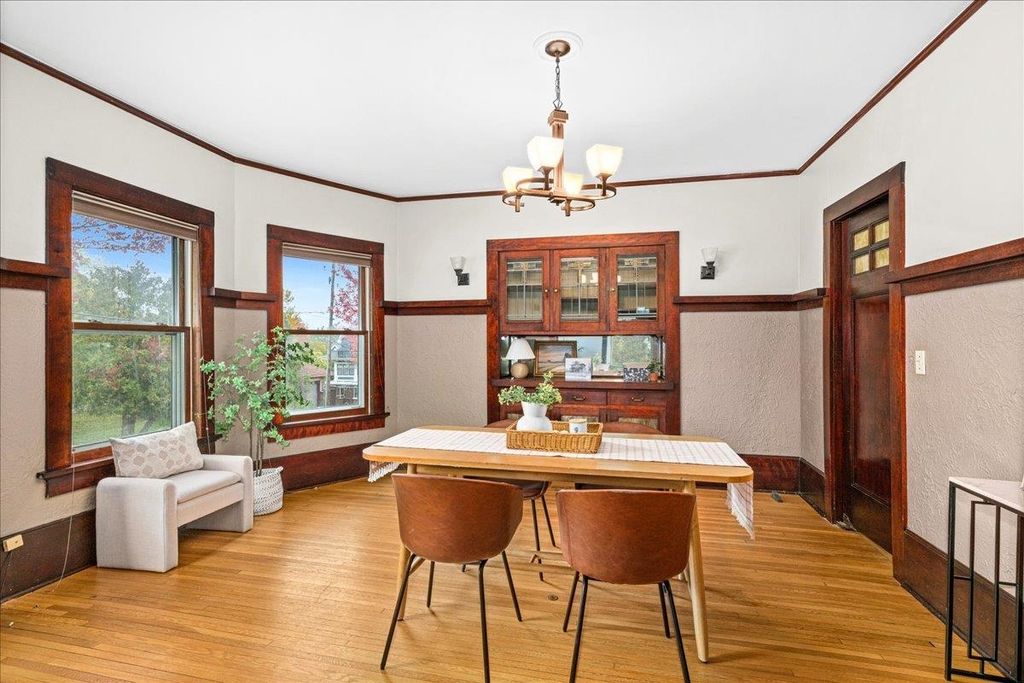 Spectacular American Four Square home full of charm, character, and incredible craftsmanship! This historic gem boasts hand-carved porch pillars, ornate mahogany woodwork, beamed ceilings, beautiful hardwood floors, and a second-floor deck with views of Lake Superior. Step into the main floor parlor/sitting room and flow into a spacious living room featuring a handsome decorative fireplace and a large picture window that lets in tons of natural light. The formal dining room showcases the original built-in buffet and offers ample space for hosting dinners. The large kitchen includes a bright breakfast nook and a perfect blend of original and updated cabinetry. A stunning open hand-carved stairway leads you to the second floor, where you'll find four generously sized bedrooms and a full bath with a tiled tub surround. The third floor adds even more space with a 5th bedroom, cozy sitting room with views, and a full bath with a clawfoot tub. Located on a corner lot with a newer 2-car garage, 1-car tuckunder, and newer boiler. A truly special home that's both welcoming and rich in architectural history"”don't miss your chance to make it yours!