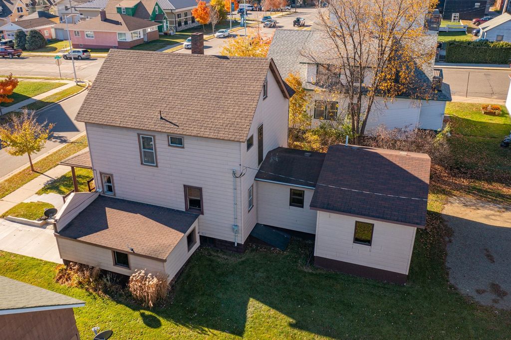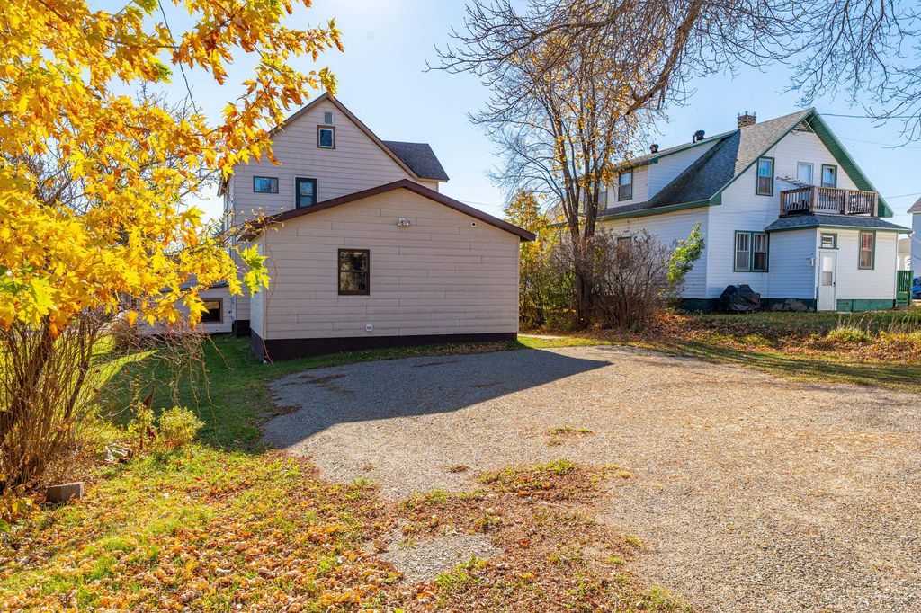 Step back in time with this historic 1912 Chapman Street home, originally built by Ely's first bank president. Once the Swedish Lutheran parsonage until 1959, the property has since been a cherished private residence. This spacious home features original hardwood floors (currently carpeted), a stained-glass front window, newer roof, and new cement driveway, garage floor, and sidewalks. The main structure is clad in durable U.S. Steel siding, and a parking area sits conveniently behind the home. A welcoming front porch offers plenty of space for a porch swing and outdoor seating"”perfect for enjoying Ely's quiet charm. A single-stall garage opens to Chapman Street, with additional covered storage under the front porch for outdoor equipment. Inside, the main floor includes a formal dining room with the original chandelier still in place. The en suite addition provides modern comfort with in-floor heat, a large bedroom, walk-in closet, and ceramic-tiled bathroom with a low-entry shower. The back entry offers a walk-in pantry, coat and storage closets, and convenient main-floor laundry with sink and hanging racks. Upstairs are three bedrooms and a full bath, with a walk-up attic for extra storage. Blending historic charm and thoughtful updates, this meticulously maintained home is ready to be cherished by its next owner"”ideally located right in downtown Ely, within easy walking distance to shops, dining, and all the best Ely has to offer.