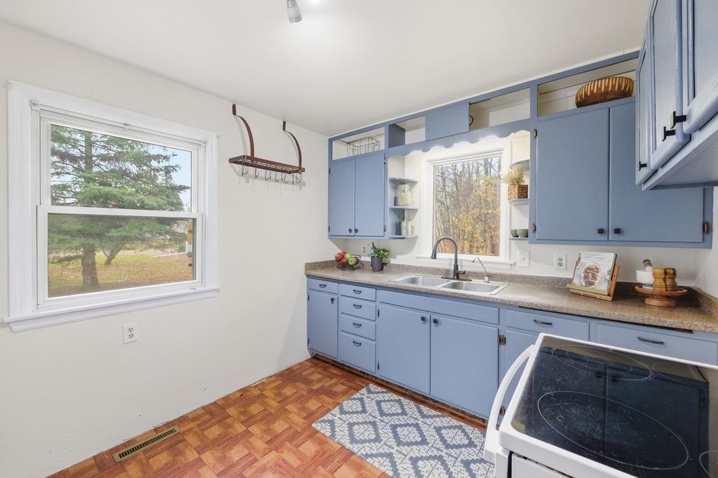 This adorable 2+ bedroom, 2 bath home sits on nearly 2 acres with a blend of open yard space and wooded privacy. Enjoy beautiful hardwood floors throughout the home. The main level has a full bath and bedroom, as well as large living/Dining room combo, with brick fireplace and large feature window. The finished upper bungalow offers great bonus space with separate bedroom with walk in closet. The full basement includes a 3/4 bath plus potential for a 3rd bedroom or additional living area. Recent updates include a new roof as well as newer furnace, water heater, and water softening system. Outside, you'll find a 1-car garage, playset, and a backyard shed/bunkhouse"”ready for your creative touch!