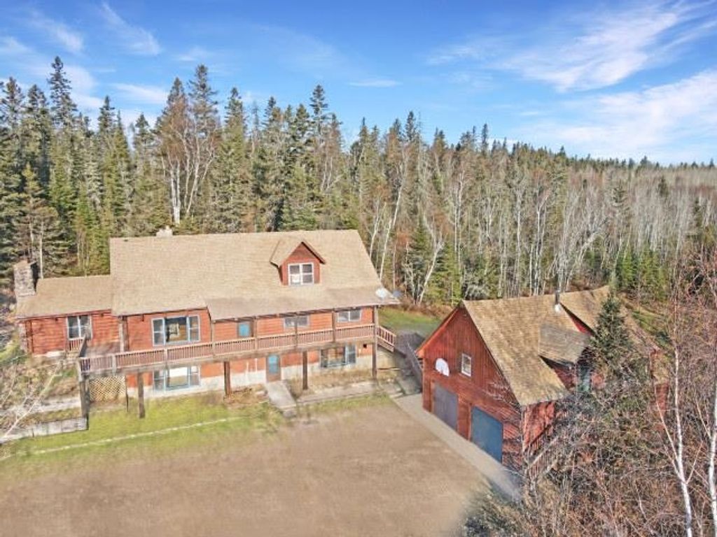 Located just off the shore of Lake Superior on Minnesota's renowned North Shore, this 5-bedroom, 4-bath log home sits on 20 acres of fully wooded privacy with no neighbors in sight and offers multiple main-floor living spaces, vaulted ceilings, natural woodwork, timber construction, and two wood-burning fireplaces, plus a walkout lower level with additional living space. A major bonus is the 840 sq ft seasonal guest quarters above the detached 30x28 garage, featuring an open layout, its own wood-burning fireplace, and a 3/4 bath"”ideal for guests or studio use. The property also includes a sauna, covered porch, large deck areas, and level forested ground ideal for trails, recreation, and year-round outdoor use, all just minutes from Silver Bay, state parks, trail systems, and the outdoor amenities that define the North Shore.