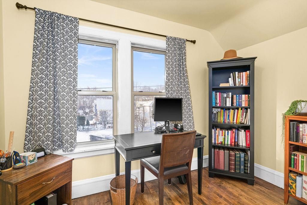 Welcome to this charming Traditional Style home located in the beloved Denfeld Neighborhood of Duluth! Step inside and be greeted by original hardwood floors and natural woodwork to the era of this beautiful home. Inside the main level features a foyer entry with a custom built in bench, spacious living room that open into the dining area and the lovely kitchen, featuring a center island and patio doors leading to the back deck. Up the stairs you will find three bedrooms with original hardwood floor and an updated full bathroom. The lower level has plenty of great storage and opportunities to finish a portion into a recreation room for more living area. Outside the home you will find a paved driveway, large 26x20 garage, back deck and beautiful pollinator gardens. Some of the larger updates completed include an updated gas furnace (2017), tankless water heater (2019), energy efficient heat pump (2021) and a new roof on the house and garage (2025)! All appliances will convey with home. This well cared for home is truly move in ready and waiting for its next owners to start their next chapter and begin creating lasting memories here too!