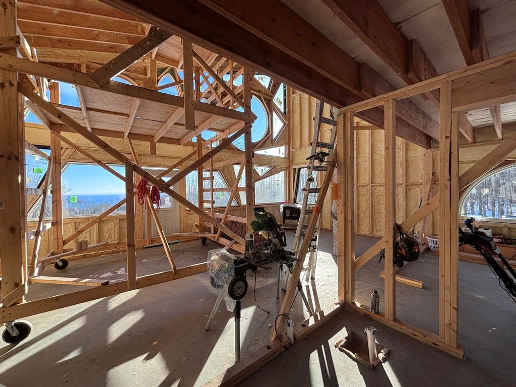 Motivated Seller!! Here is a brand new build ready for your final touches on a beautiful wooded lot. This property features a gorgeous view of Lake Superior and has a meandering creek flowing through it! Less than a 5 mile drive into the picturesque town of Grand Marais. The majority of the hard work is done with a brand new well, septic system, power & broadband in place. In floor heat is ready to be connected and a Grundfos constant pressure water system ready to be turned on. Open concept with an entire wall of unique and south facing windows lets in a ton of natural light. You'll also find, nestled away on the property, a sweet little treehouse with a wood burning stove. A fun place to escape into a good book! Make this property yours.