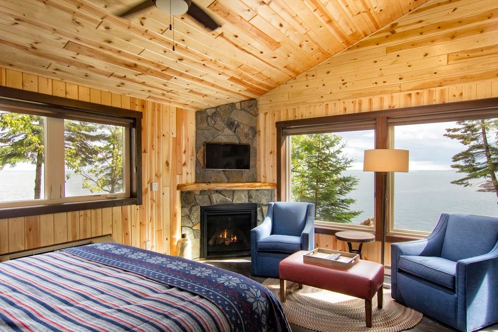 Interval ownership of a fully renovated (2017) stand-alone cabin on Lake Superior. 1/4 share ownership offers 13 weeks per year for personal stays or rentals. This cabin sits just feet from Lake Superior. A generous concrete patio with a private firepit, grill and Adirondack chairs overlooking the Lake offers stunning long southerly views of the open water and North Shore shoreline. Oversize windows share the same view from inside the cabin. the cozy studio layout features a full kitchen, bathroom, dining table, king bed and comfortable chairs by a corner gas fireplace. It is fully furnished inside and out and stocked with all you need. The HOA maintains all common elements and the management company provides maintenance, housekeeping and rental services. Turn key operation for your year round enjoyment on Minnesota's North Shore.