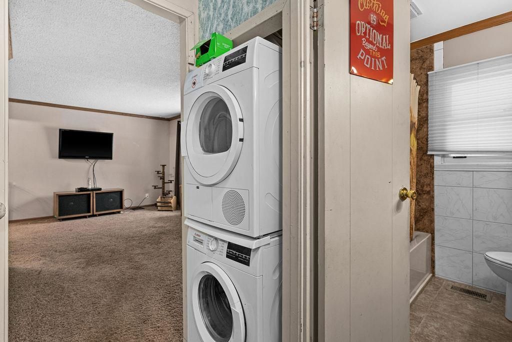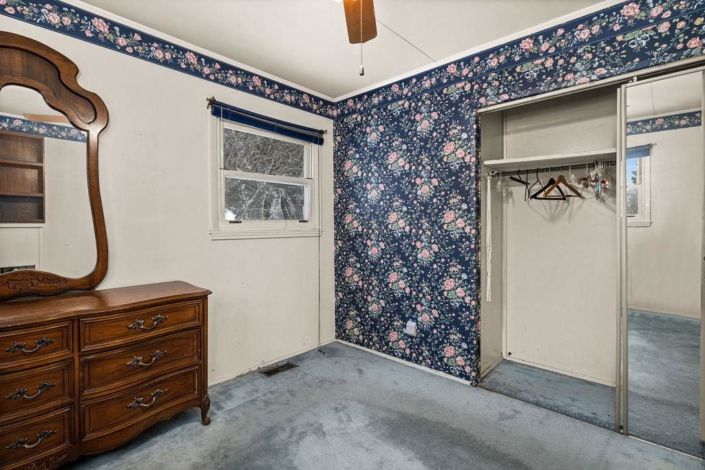 Walk in the side door to the generous sized entry way/foyer with oak storage cabinets, then into the kitchen which flows into the living room with sunlight pouring in the picture window. In the hallway is the stackable washer and dryer, bathroom, 2 bedrooms and office (or non conforming bedroom, no closet, workshop or storage room and the spacious family room with a fireplace and sliding glass doors out to the deck to enjoy the back yard. The detached 2 car garage is close and convenient , behind the garage sits a storage shed too! Back to the woods location! Please include the AS IS addendum with offers, all remaining personal property and appliances will stay.