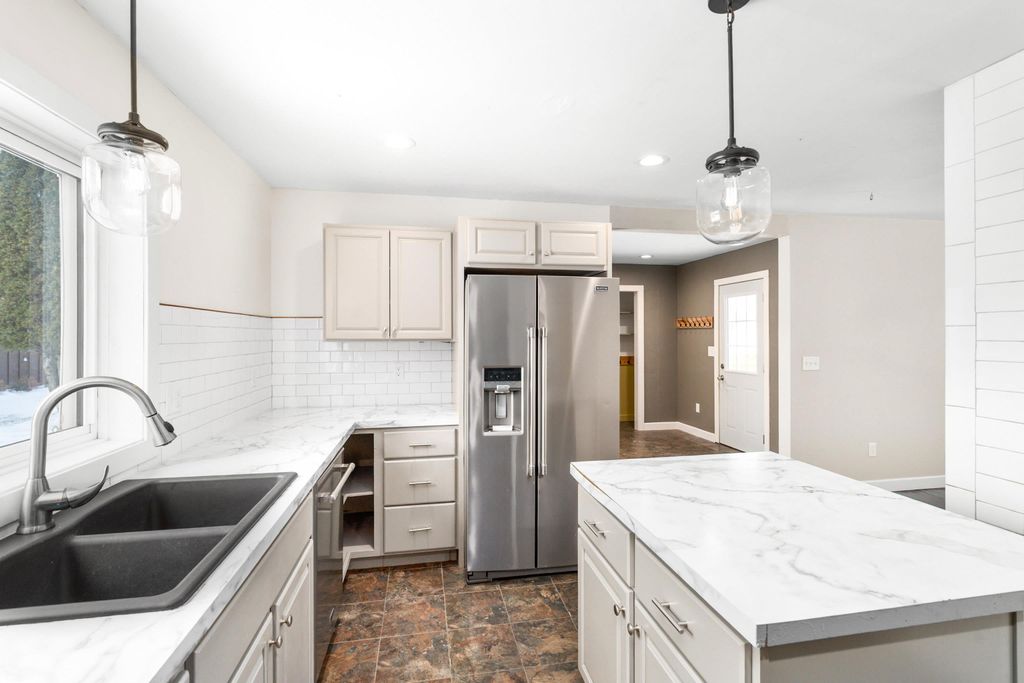 RARE OPPORTUNITY! Have you been searching for the perfect home with thoughtful updates within city limits? Look no further! This property is located on a quiet lot with alley access so no street noise. This home boasts 3 bedrooms, 3 bathrooms, a 2 car garage, fenced in yard and lots of updates to create a move-in ready home! As you enter the generous entryway, you are greeted with an open flow to the gorgeous kitchen boasting lots of cabinet space, tile updates, lighting and appliance updates to set the stage for all your holiday entertaining! Off the kitchen you will find a well appointed living room/dining room space that overlooks the fenced in backyard. As you travel through the main floor, you will find a full bath that is fully renovated with a stacked washer and dryer for ease of use. You will also find a main floor primary with an adjoining half bath and a second guest bedroom on the main floor. As you go down to the lower level, you will be 'wowed' with a finished basement that features another bedroom with egress, a second bonus room with egress, a full bath and a family room. This property will not last long, call for your private tour today!