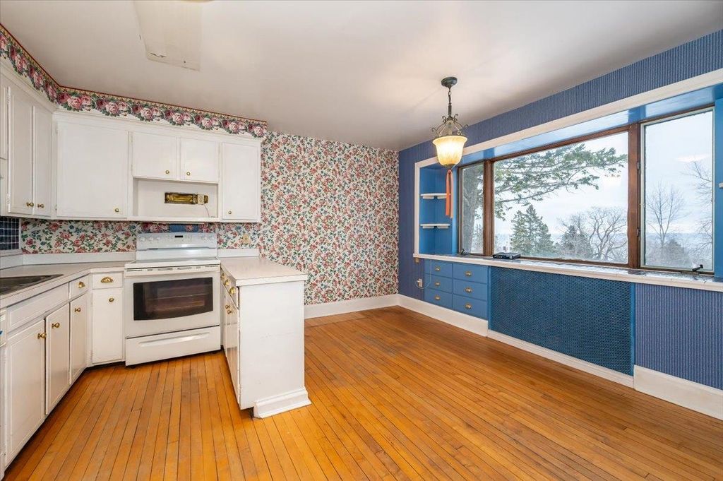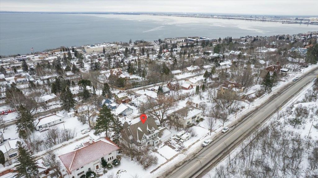 Extremely Unique property! At some point in history, this house was a majestic single family home. It could be again. Terrific views even from first floor. If you are looking for a multi-generational home, look no further! This unique, majestic home sits on an oversized lot with terrific Lake Superior views from all three floors. The first floor has a one-bedroom apartment with 1563 Square feet! There is a separate laundry in the lower level but room off the kitchen if a main floor laundry is necessary. Or rent out the first floor for top-dollar. There is a private deck to enjoy the Lake Superior Views as well as a great picture window in the living room. The second and third floors are very spacious with a formal dining room, bedroom, full bath, huge living room and a large eat-in kitchen all on Second floor. The laundry is located conveniently on second floor as well. Both the kitchen and living room have picture windows so you can enjoy great views of Lake Superior. There is an Office/bedroom space at the top of the third floor stairway with a 3/4 bath. Turn left and you will find a huge rec room or bedroom. There is a large storage space tucked in a gable.