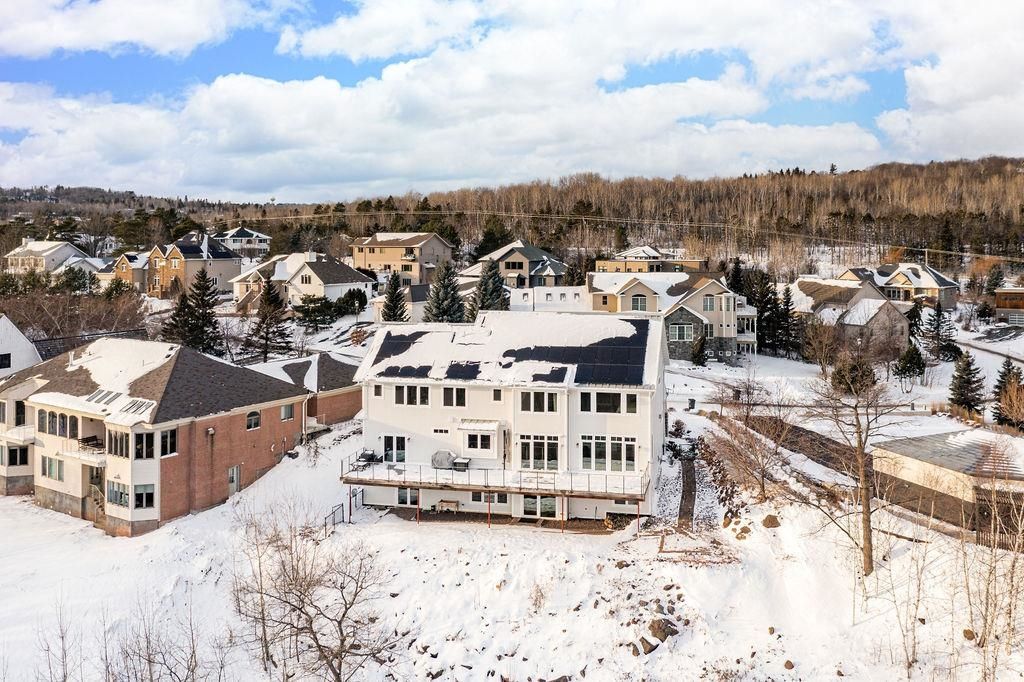STUNNING LAKE SUPERIOR VIEWS! Perched high above the city in sought-after Northland Estates, this architect-designed 5+ bedroom, 6-bath, 3 car garage home combines refined craftsmanship with breathtaking views. The open main level is perfect for entertaining, featuring a gourmet kitchen with custom tiger maple cabinetry, granite and quartz surfaces, premium appliances, and an expansive walk-in pantry. The adjoining family room offers the ideal space to relax and take in the panoramic scenery. Upstairs, three ensuite bedrooms boast sweeping lake views, joined by a flex/game room and a secondary office. The luxurious primary suite includes dual baths, a steam shower, soaking tub, and a walk-in closet that connects to the laundry room. The walk-out lower-level impresses with a spacious family room and new wet bar, a soundproof theater, gym with steam sauna, additional bedrooms/offices, and more. High-end finishes and recent upgrades shine throughout. Outside, enjoy a paver driveway, manicured landscaping, and a maintenance-free deck spanning the back of the home"”perfect for ship watching over Lake Superior. As a bonus, the new solar system eliminates your bills! A truly one-of-a-kind Duluth residence offering unmatched style, comfort, and views.
