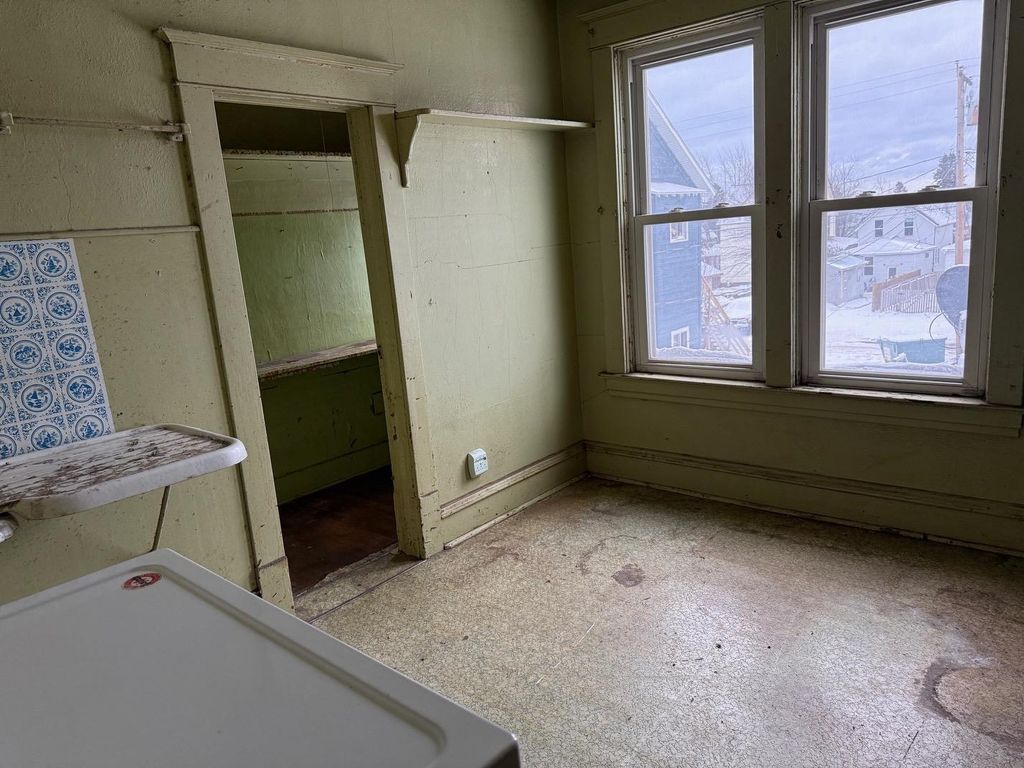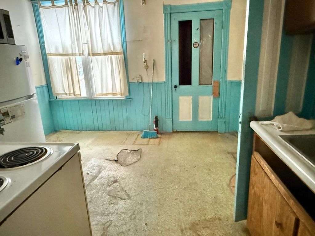 Winter project house! Layout conducive to a duplex with kitchen upstairs and enclosed front and rear stairways & exterior basement access. Updated exterior with vinyl siding, aluminum soffits and eaves & vinyl windows. Interior needs work, property froze last winter. Now has a new furnace but there is known pipe damage. Estate--Property sold As-Is.