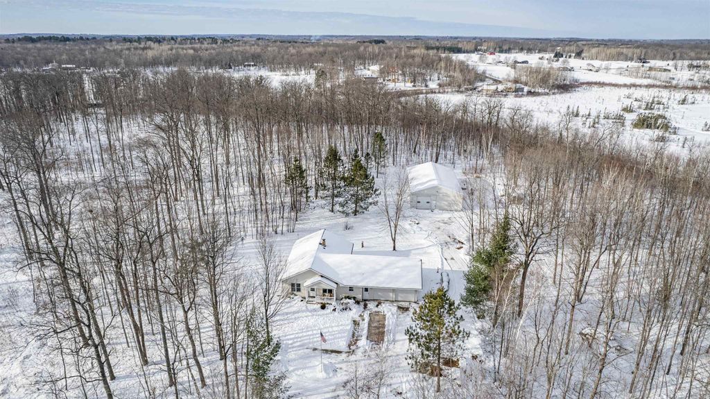 Solid and well-maintained three-bedroom, two-bathroom home set on eight beautiful wooded acres abutting Lac La Belle Lake. This property features an open floor plan, convenient main-floor laundry, and a private en suite with its own bath. The lower level is wide open and ready for your finishing touches, offering excellent potential for added living space. A 36' x 64' pole shed includes a heated workshop"”ideal for hobbies, storage. Enjoy privacy, nature, and versatility all in one exceptional setting.