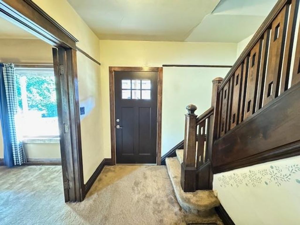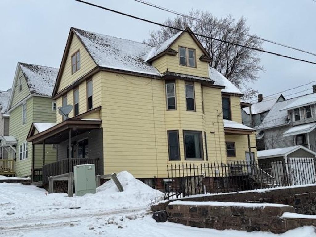 Warm natural woodwork welcomes you throughout this charming home. The kitchen features a rare windowed walk-in pantry and a cozy breakfast nook, while the formal dining room is accented by classic wood columns. The bright living room offers a new bay window and a new front entry door for added style and security. Hardwood floors lie beneath the carpet in most rooms, with exposed hardwoods upstairs, newer windows, and a bedroom with two closets. Additional features include a newer roof (2013), an unfinished basement with extra-high ceilings, and an unfinished third-floor attic with great potential. Outside, enjoy a recently remodeled 12x20 detached garage plus an extra off-street parking space. Electric: $75/mo average Water: $31/mo average Sewer: $28/mo average Gas: $49/mo average