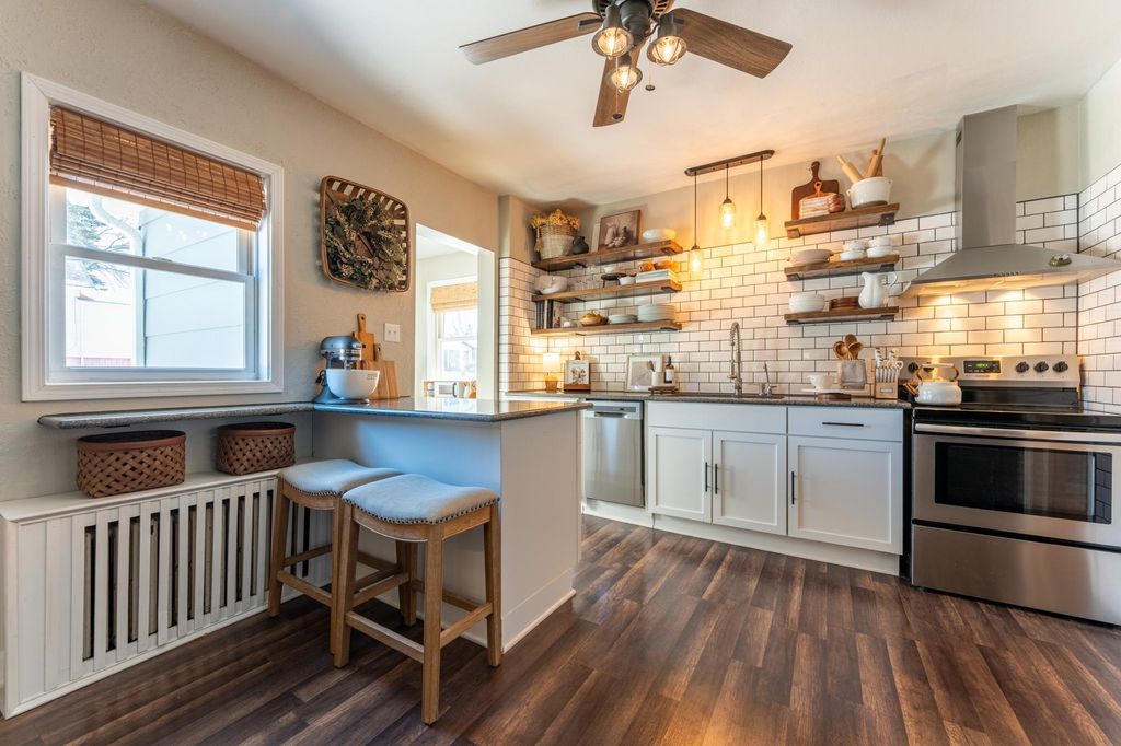 Beautifully updated 3 bedroom 2 bath home on a corner lot in Ely. Great location, close to the school and downtown services. Well designed contemporary kitchen with a pantry, granite counters and newer appliances. Ceramic tile backsplash. Dining room off the kitchen has refinished wood floors. The spacious living room features refinished hardwood floors and arched doorways. Main floor powder room with a sliding barn door.. Open stairway leading up to the 3 bedrooms and full bath. The master bath has a tiled shower and tub. Centrally located with 2 corner lots. Attached 2 car insulated and heated garage. Open front porch with lighting and a porch swing. Pine trees, flowering crab, lilacs,and hydrangeas.This beautiful home is move-in ready!