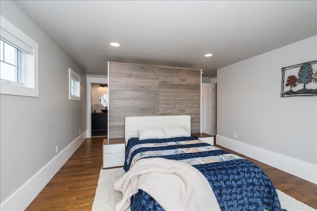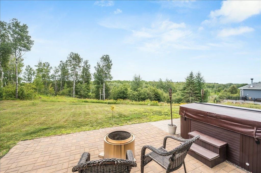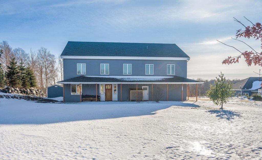 Set on a quiet dead-end street in Northridge Estates, this exceptional 5-bedroom, 4-bath home offers over 4,200 finished sq ft on nearly an acre, surrounded by 120 acres of protected association-owned nature preserve. Built in 2015, abundant southern exposure fills the home with natural light and beautiful sunrise and sunset views. The main level features a den/office, living room with freestanding wood stove, dining room, and a well-appointed kitchen with incredible cabinet space and butcher block countertops. The entire main floor is heated with in-floor heat. Patio doors lead to the backyard patio complete with a hot tub. A functional mudroom with utility sink connects to the attached 4-stall heated garage featuring in-floor heat and professionally finished epoxy floors. The upper level includes two private ensuite bedrooms with walk-in closets, three additional bedrooms, a full bath, a spacious family/rec room (could be converted to a 6th bedroom), laundry room, and a large landing with built-in bookshelves. Upstairs bathrooms feature heated floors. The remainder of the upper level is heated by forced air. The third level offers excellent storage, a bonus rec space with climbing wall, and is roughed in for a future full bath. Prairie Restoration Inc recently revitalized the landscape with native plantings and wildflower meadows, creating a beautiful spring and summer setting. Enjoy direct backyard access to miles of maintained trails, abundant wildlife, and a strong neighborhood community. Annual association fee $225.