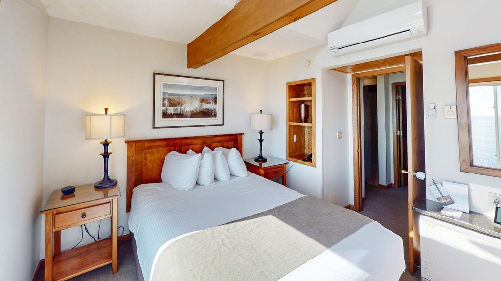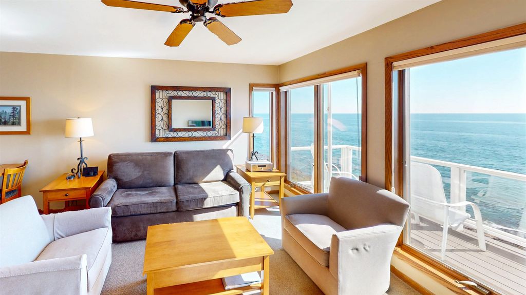 Unit 37 at Bluefin Bay is spectacular in every way. This upper-level, south facing unit affords commanding views of Lake Superior. Unit 37 is located near the tennis courts and indoor pool within Bluefin Bay. The interior touches to the unit are very tasteful, with high quality craftsmanship and an understated elegance. The unit can be locked-out into two separate units offering flexibility in rental and owner use. Listing price includes all furnishings. Two jetted whirlpool tubs, wood burning fireplace, and access to all of the resort's amenities make this a solid investment property with the ability to enjoy with family and friends for years to come.