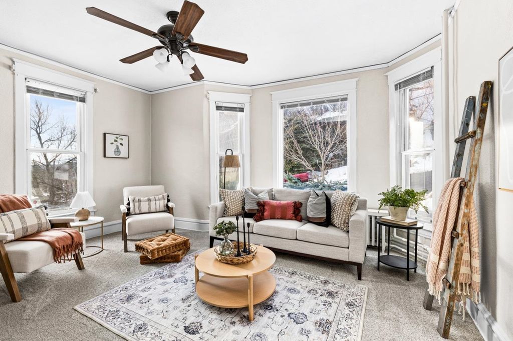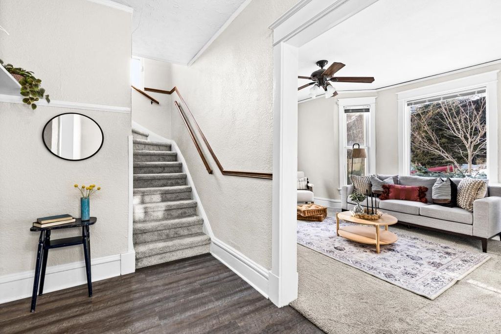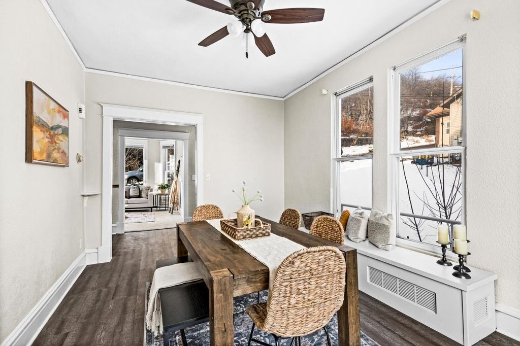 Step inside and feel right at home! As you enter the main foyer, you're greeted by a bright, sizable living room to your right, perfect for cozy movie nights or hosting friends against a backdrop of large, sun-drenched windows! To your left, the formal dining room shines with brand-new LVT flooring and sliding glass doors that lead straight to the back deck. (Pro tip: Grab a coffee and soak in those lake and river views!) The heart of the home is the modern and updated kitchen, which boasts plenty of room for a breakfast table! You'll love the sleek new granite countertops, custom tile backsplash, and a full suite of brand-new stainless steel appliances. Upstairs, the retreat continues with three spacious, sun-filled bedrooms featuring plush new carpeting. The bathroom offers a space for rest and reset, with a spa-like large soaker tub and elegant new tile surround! The walk-out basement is a clean canvas, offering equity potential for a workshop or extra living space adding value to your investment! Behind the scenes, we've taken care of the essentials too, including newly insulated rim joists, updated GFCIs, and new paint and flooring for total peace of mind! Perhaps the most unique feature is the land itself. Situated on a rare double lot (two 35-foot lots!) the outdoor possibilities are truly endless, from expansive gardens to the ultimate entertaining space! When you do decide to venture out, you are just moments away from the heart of the Craft District. Enjoy easy access to the city's best local shopping, dining, and breweries. Whether you're staying in for the views or heading out for the entertainment, this home offers the very best of both worlds!