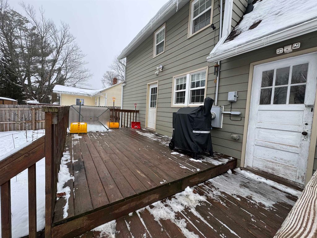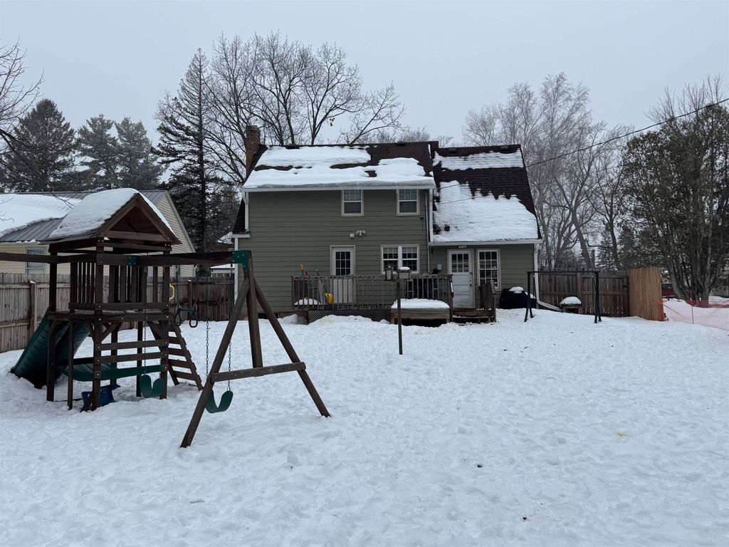 You will LOVE this English Tudor home in Sandstone! Completely remodeled in 2017 with new windows, siding, roof, kitchen cabinets, countertops, bath tile, bathroom fixtures, beautifully refinished floors, fresh paint inside and out, and outside deck with a sturdy wood fence on three sides with a large gate opening in the alley and wood storage area. The main level offers an entry porch opening to a living room, dining room, updated kitchen and 1/2 bath. Upstairs you have three ample sized bedrooms and a full bath. The basement has the utilities, half bath, laundry, and storage area. There is an attached garage that also offers access to the back deck. In addition, the Seller purchased the lot next door in August of 2019 which offers an older garage and shed. Build a garage or add onto the fenced yard area....so many options! This home is charming and a MUST SEE!