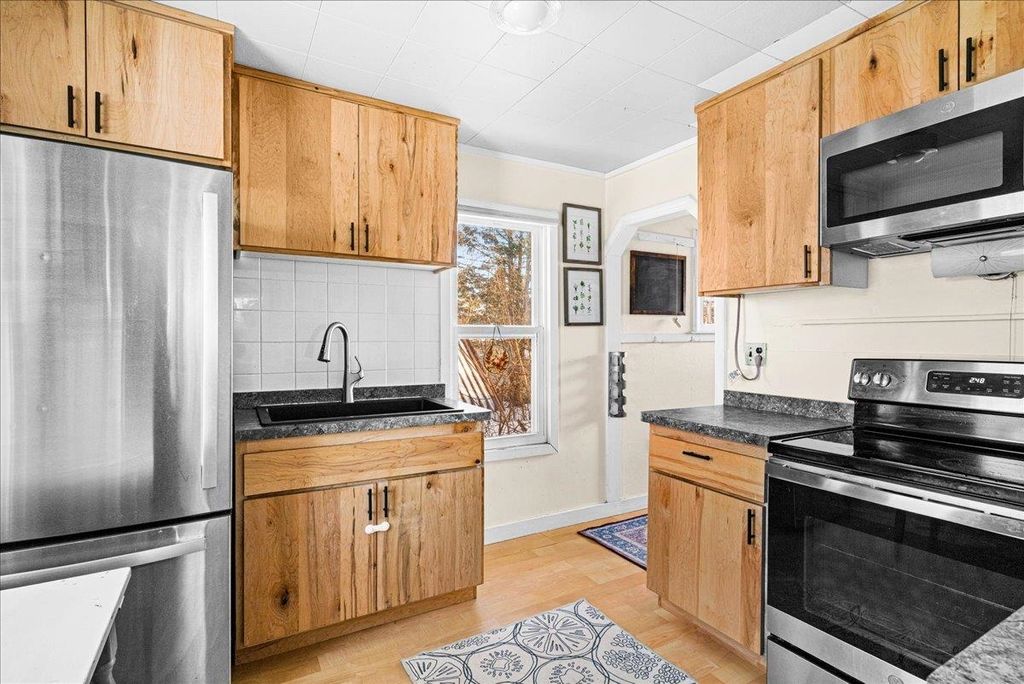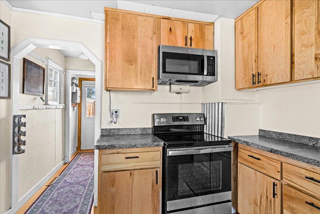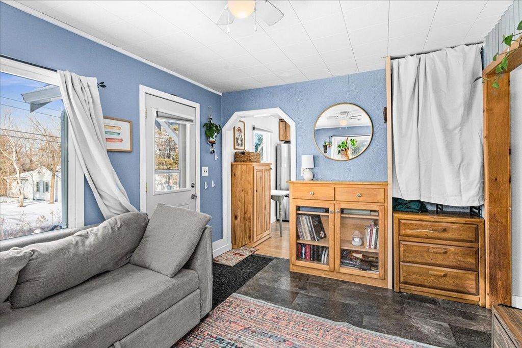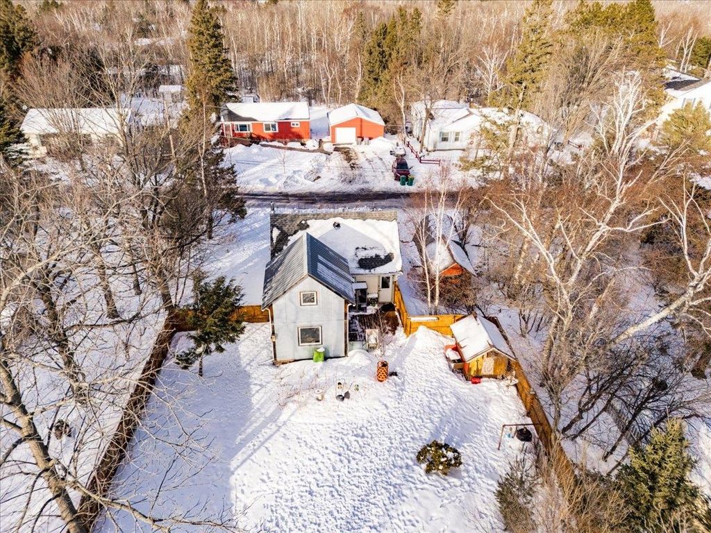A sharply updated 2 bedroom, 1 bathroom home in Woodland, sitting on a massive .47 acre fully fenced yard. This property has been upgraded with a completely remodeled kitchen, foundation parging, a new carport cover, updated fencing, outdoor lighting, select windows and doors, and a basement toilet newly installed. The main level features a bright kitchen, living room, bedroom, den, and bathroom. Upstairs you'll find a flexible bonus space ideal as another bedroom, office, or creative retreat. The unfinished basement provides excellent storage, a dedicated laundry area, and a head start on a second bathroom. Step outside to a large deck overlooking the fenced yard, a carport and 2 storage sheds. This is a cozy, move in ready home, opportunities like this do not last long!