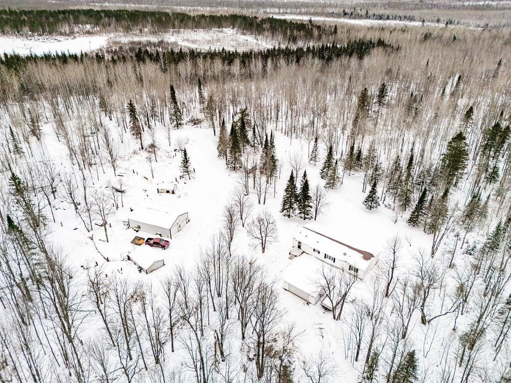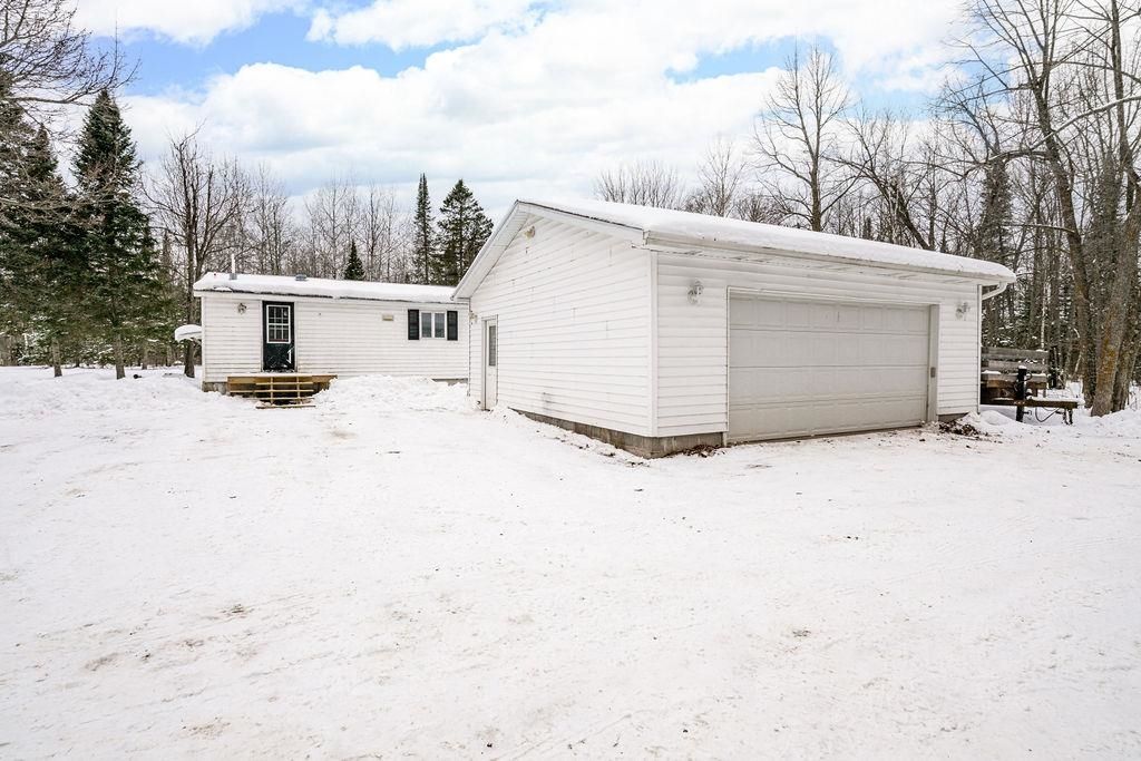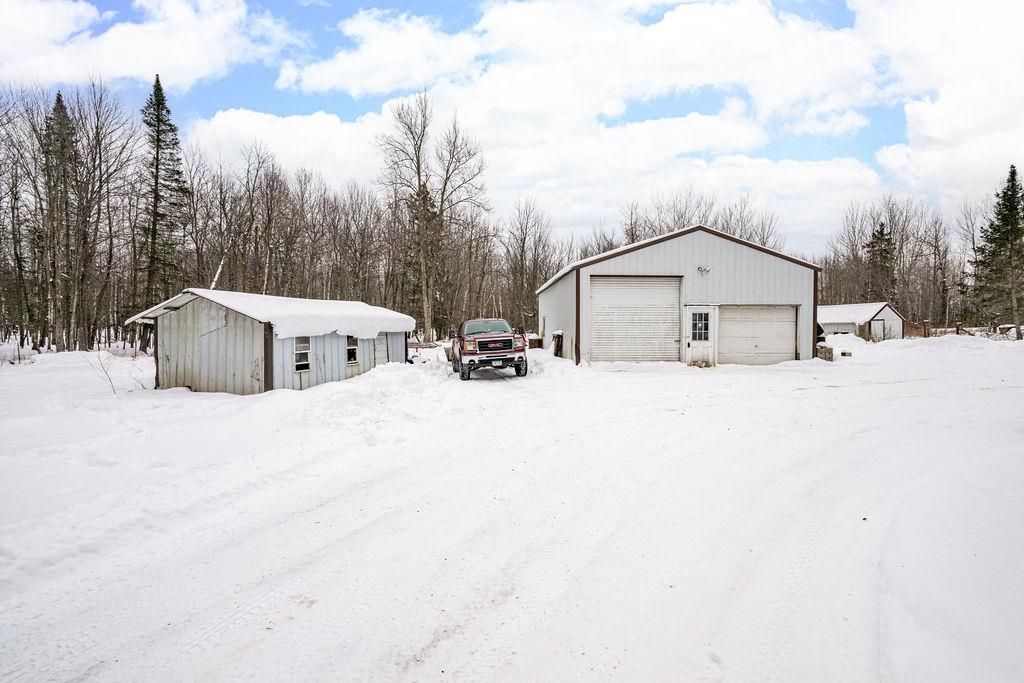Check out this 13+ acre property that, with a new two-car garage and a 26x32 pole building. Septic, well, electric all good to go on acreage! Centralized among snowmobile trails to take you anywhere! With some sweat equity, at this price, you can make it your own! Featuring 2 plus bedrooms and 2 baths, the main floor includes an open kitchen/dining area, full bath. The living room walkout patio doors and two generous bedrooms. You'll also find main floor laundry and a half bath. The pole building has a loft for extra storage and another room perfect for an office or whatever you need. Another building could be charming with some cleanup. There are additional outbuildings for animal shelters; the property has housed chickens, cows, goats, pigs, and more. The home also boasts a new metal roof and new carpet in the bedroom. Selling below appraised value of $276,000 (11.2024).