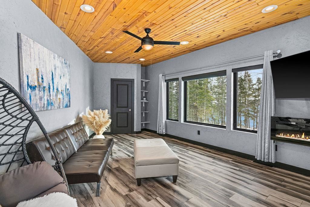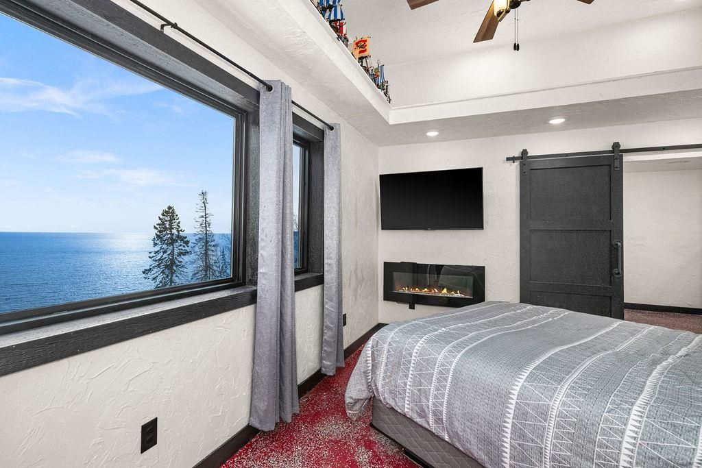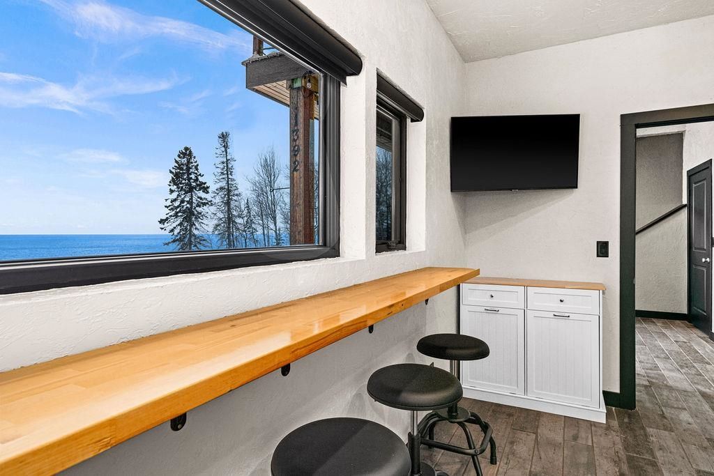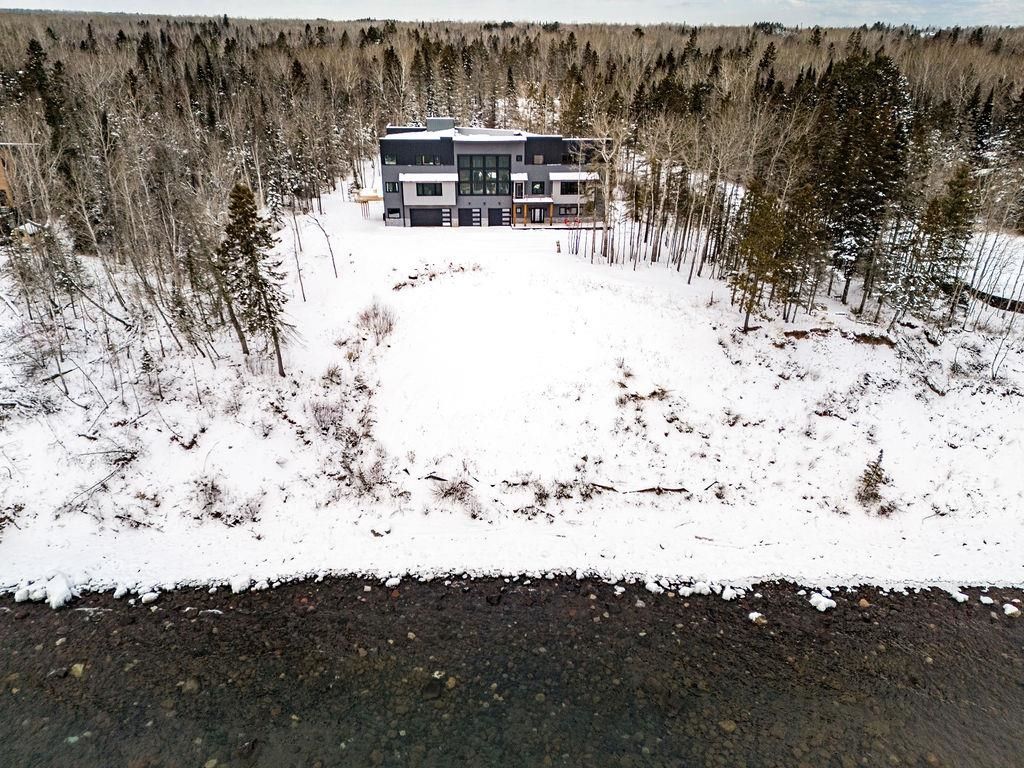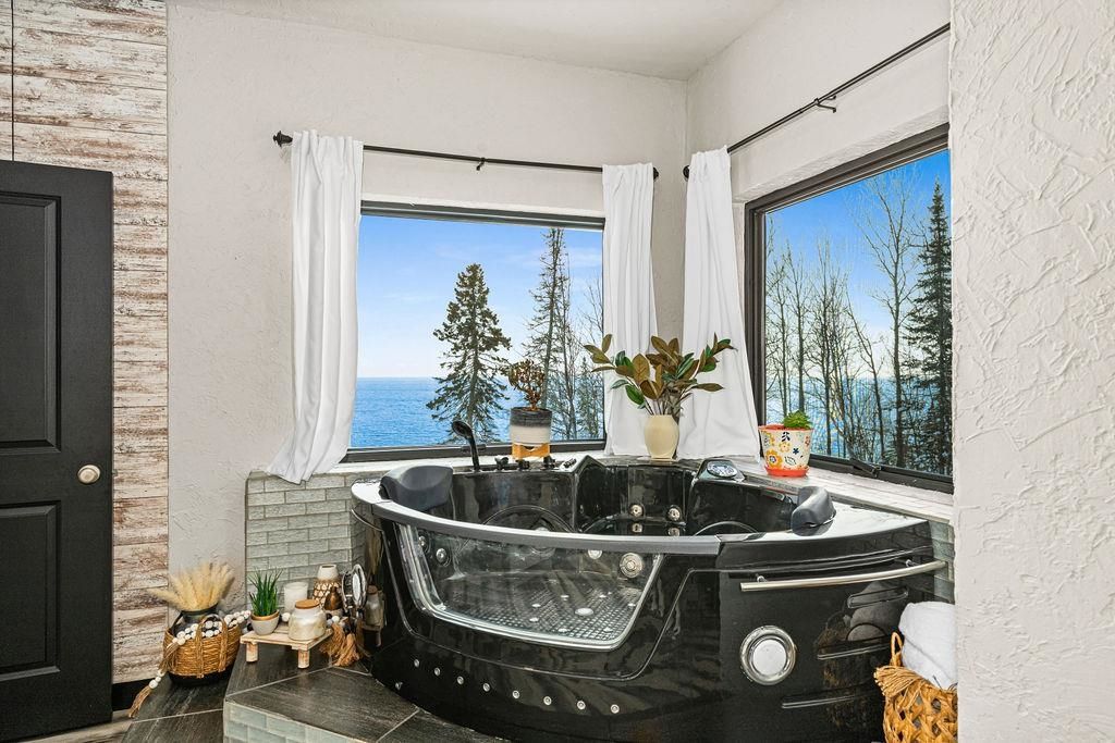A rare opportunity to own approx. 250 ft of private shoreline on Lake Superior. This home is designed for those who want front-row access to the lake and a life that doesn't slow down. The heart of the home is the unforgettable kitchen, dining, and great room, where two full stories of floor-to-ceiling windows pull the lake straight into the space. The kitchen is built to host, oversized in scale with a massive center island that seats five, double ovens, smart refrigerator, large walk-in pantry, and clean modern finishes. Whether you're cooking for a crowd or enjoying a quiet morning coffee, this space was designed to gather. Down the hall, the primary suite is dreamy. Wake up to Lake Superior views, unwind in the soaking tub, and enjoy a 10x14 custom walk-in closet with built-in shelving, drawers, and counter space. The beginnings of a private second-story deck are already in place, ready to be finished to suit your vision. This level also includes an office, an additional bedroom, a full bath, and laundry. The third floor adds another layer of flexibility and inspiration. A lofted office overlooks the great room, alongside a large open area currently used as a workout space, all framed by sweeping lake views. This level also features another bedroom and full bath. From the workout area, approximately 1300 square feet of unfinished space offers endless possibilities: studio, theater, additional living quarters, or something entirely your own. From here, step outside to one of the home's most unexpected features-a rooftop pickleball court! And when the weather turns, head down to the basement where you can shoot some hoops in the 1/2 basketball court. This a true year-round recreation retreat. The first floor features a second kitchen, bath, and laundry rm. Combined with the family room upstairs, this area was previously used as a short-term rental. A heated four-car attached garage completes the home. Stoney Point is nationally known for freshwater surfing, yet here you have something even more rare, your own private stretch of shoreline. Paddle out, watch surfers carve the waves below, fish for lake trout or loopers right at the shore, or simply sit back and let the sound of Lake Superior reset your day. This isn't just a Lake Superior home, it's a place where surfing, pickleball, basketball, and everyday life intersect, wrapped in architecture that lets the lake lead the experience.