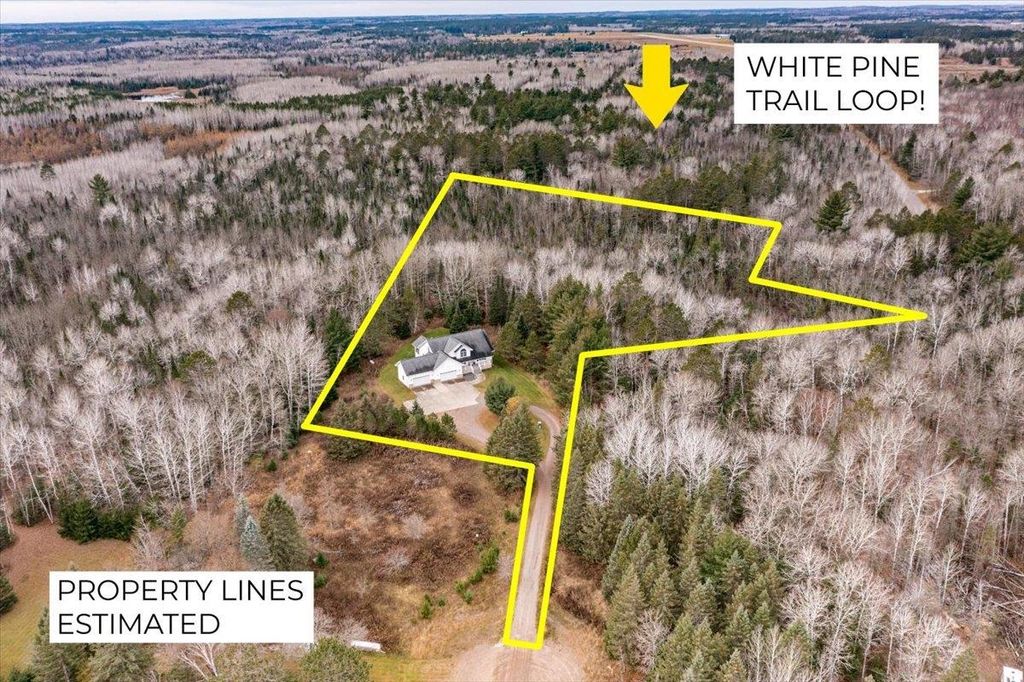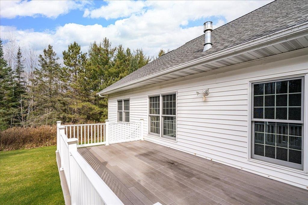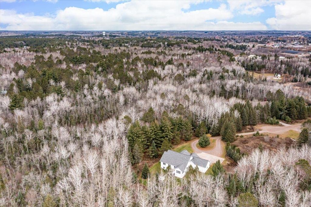 There is so much to love about this four-bedroom, four-bath home with over 4,200 sq. ft. of living space that has been lovingly planned out, built and meticulously maintained by its original owners. The captivating home is perfectly placed on a 5.37-acre lot, ready for new owners and is being offered on the market for the first time. As you pull in to the circle driveway, the front porch welcomes you and upon entering the grand foyer, you will notice the large formal dining room with oak flooring. Another attractive feature of this home is the well-thought-out office space with frosted glass French doors, built-in shelving, and two-person desk, framed by a large window with abundant natural light. Continuing into the main-floor living space, you'll be impressed by the beautiful fireplace and cherrywood trim throughout, vaulted ceiling and enough space to welcome all your guests. Entertaining is a dream in the large kitchen featuring cherry cabinets. Adjacent to the kitchen is a lovely sunroom featuring French doors providing some separation from the kitchen if desired and a patio door leading to the 12x24 maintenance-free deck overlooking the beautiful, wooded backyard and recently added paver patio with gas firepit. Back inside the home, the spacious main-floor primary bedroom with a gigantic walk-in closet and ensuite bathroom will wow you. Upstairs, you'll find two more bedrooms, both with walk in closets, and a full bathroom. The lower level is completely finished and boasts a massive recreational space for friends and family to enjoy, along with a bedroom, 3/4 bathroom and sauna - plus two extra rooms that could be used for crafting, another office or simply more storage. Solid wood, paneled doors, Marvin Windows, storage space galore and loads of natural light is found throughout the home. The insulated and heated four-stall attached garage provides comfort and convenience in the winter months and a 1/2 bath/powder room is located near that entry for convenience. There is a stackable washer and dryers on the main-floor and full laundry room in the lower level make doing laundry a beeze. A recently installed whelchair lift in the garage with 36" wide doorways, makes it accessible to all. Walking distance to Northwoods Hockey Arena and Pine Valley ski area. Don't miss out on your chance to call this one of a kind home yours!