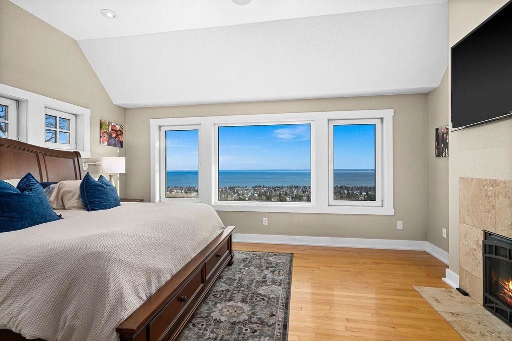 STUNNING LAKE SUPERIOR VIEWS! Perched high above the city in sought-after Northland Estates, this architect-designed 5+ bedroom, 6-bath, 3 car garage home combines refined craftsmanship with breathtaking views. The open main level is perfect for entertaining, featuring a gourmet kitchen with custom tiger maple cabinetry, granite and quartz surfaces, premium appliances, and an expansive walk-in pantry. The adjoining family room offers the ideal space to relax and take in the panoramic scenery. Upstairs, three ensuite bedrooms boast sweeping lake views, joined by a flex/game room and a secondary office. The luxurious primary suite includes dual baths, a steam shower, soaking tub, and a walk-in closet that connects to the laundry room. The walk-out lower-level impresses with a spacious family room and new wet bar, a soundproof theater, gym with steam sauna, additional bedrooms/offices, and more. High-end finishes and recent upgrades shine throughout. Outside, enjoy a paver driveway, manicured landscaping, and a maintenance-free deck spanning the back of the home"”perfect for ship watching over Lake Superior. As a bonus, the new solar system eliminates your electric bills! A truly one-of-a-kind Duluth residence offering unmatched style, comfort, and views.