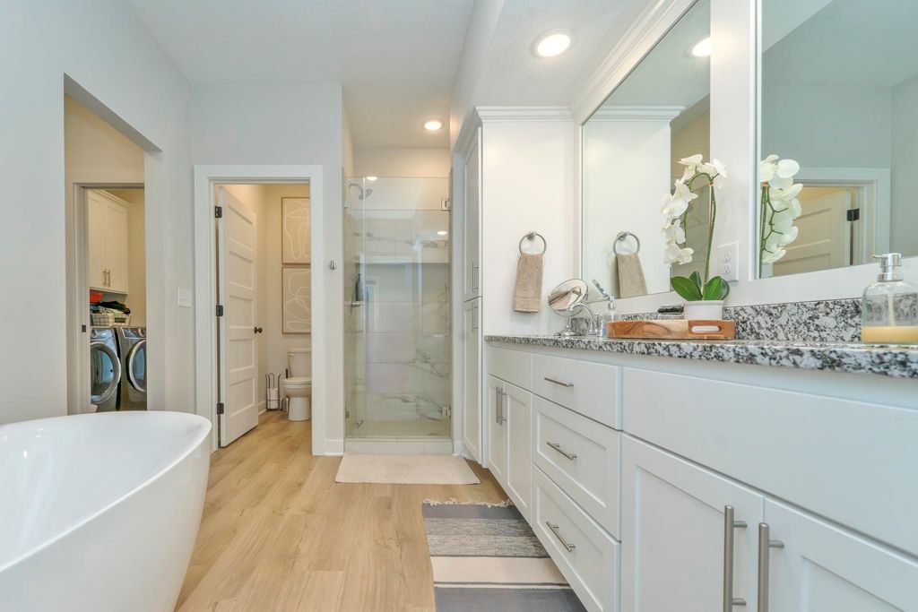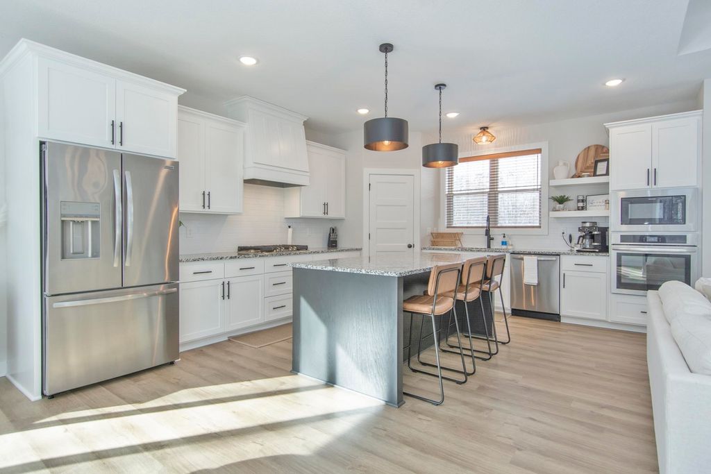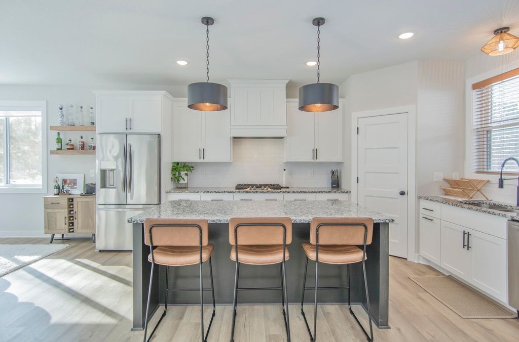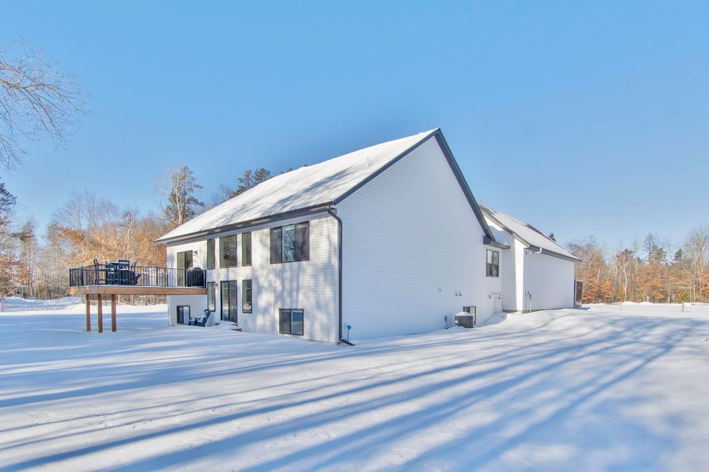***Open House Sunday, February 1st 11:30 AM to 1:00 PM*** Newer construction home built in 2024, located in Pequot Lakes in the heart of the Brainerd Lakes area and set on a 1.25-acre lot. This thoughtfully designed home offers approximately 3,560 finished square feet with a functional layout and modern finishes throughout. The open-concept main level is ideal for everyday living and entertaining, featuring a living room with a gas fireplace, large windows providing excellent natural light, a kitchen finished with granite countertops and ample cabinetry, and a dedicated main-level dining room adjacent to the kitchen and living room. Two bedrooms are located on the main level, including a spacious primary suite with a full private bathroom, a large walk-in closet, and convenient direct access to the main-level laundry room. A half bathroom completes the main level. The fully finished lower level provides excellent additional living space with three more bedrooms, a full bathroom, a large family and recreation room offering flexible use for entertaining, guests, home office, or fitness space, and additional dedicated storage areas. Outdoor living is enhanced by a Trex composite deck off the main level as well as a large patio at the rear of the home overlooking the backyard, providing multiple areas to relax or entertain. Car enthusiasts and recreational buyers will appreciate the oversized heated four-car attached garage measuring approximately 40x24 with 13.5-foot ceilings, along with an additional 15x24 side parking pad located outside the garage offering convenient space for extra vehicles, trailers, or recreational equipment. The home features LP SmartSide and vinyl siding, propane forced-air heat, central air conditioning, private septic installed in 2024, private well, and CTC fiber optic internet. Located within the Pequot Lakes School District and just minutes from area amenities, this property also offers easy access to recreation with approximately three public boat launches located within two miles, making it simple to enjoy the Brainerd Lakes area lifestyle.