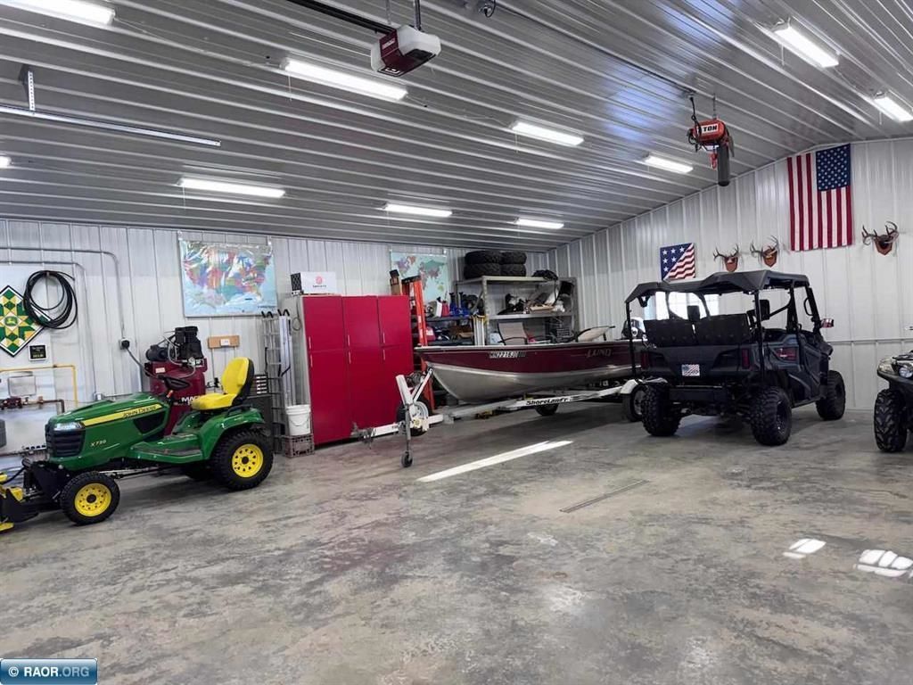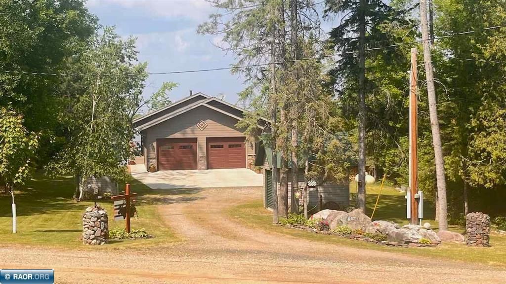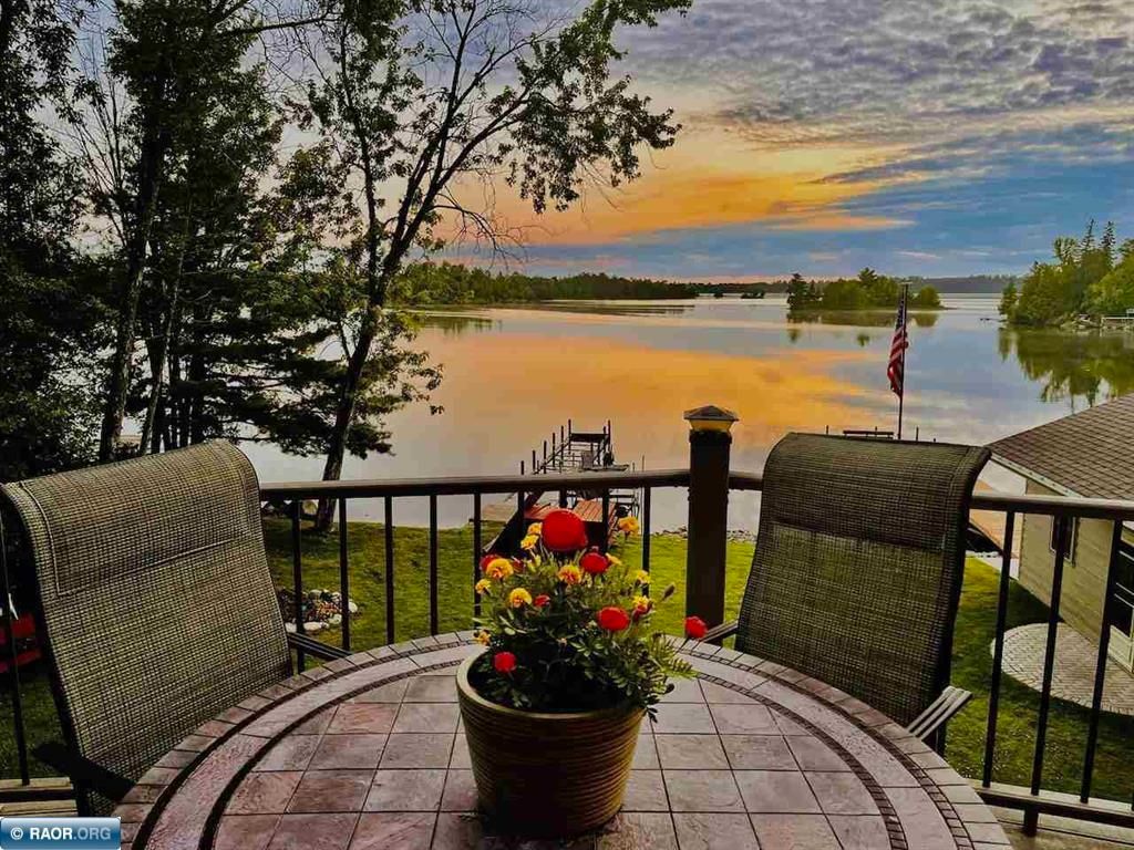 Impeccable lakeside retreat offering 3 BR & 3 BA with open-concept design & dramatic birch T&G ceilings. Elegant finishes include natural stone, granite, hardwoods, oversized tile & custom hickory kitchen with SS appliances. Expansive windows frame breathtaking big-water views with islands. Massive wrap-around deck & walkout patio extend outdoor living space. Main-floor primary suite with private bath, walk-in shower & convenient laundry/mudroom with ample storage. Two stone fireplaces highlight upper & lower living areas, with walkout family room & sauna access for entertaining & relaxation. High-speed fiber optic internet. Beautiful landscaping with mature trees, perennials & garden shed. Oversized heated two-stall garage with 2x6 construction, spray foam insulation and LP Smart siding. Outdoor amenities include 20x26 boathouse with rail system, private sauna and 36x40 insulated heated Morton building. Level 1.4 acres with 100' lakeshore. Meticulously crafted & truly turnkey!