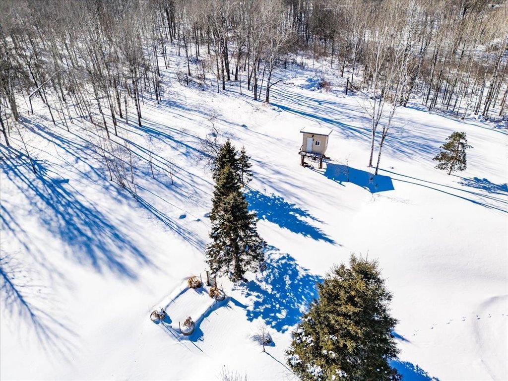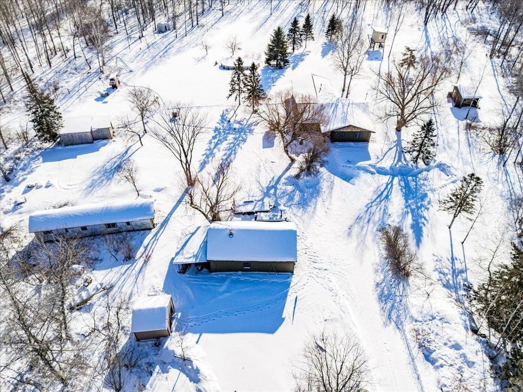 Spectacular one-level living in Hermantown! This sprawling 3+ bed, 2-bath ranch is set on 20 acres and includes multiple outbuildings. Inside, you'll find a welcoming open-concept floor plan that connects the kitchen, dining, and living areas, all with new LVT flooring. The kitchen features cherry cabinets, a center island and a breakfast bar, gas stove, stone backsplash, 2 refrigerators, and a new dishwasher. The living/dining area is warm with a soapstone wood-burning stove, handsome mantel, vaulted ceilings, and a slider leading to the patio and fire pit. The primary suite offers a cozy sitting room with a propane fireplace, built-in shelves, and sliding barn doors leading to the bedroom. Two additional bedrooms offer new carpet, and an office that could be a nonconforming bedroom. You'll love the updated full bath with double sinks, copper faucets, and rustic custom woodwork. There is an updated laundry area with new washer and dryer, and a new mudroom with excellent closet space. Outside, the property truly shines with storage options, a 2-car garage with an attic, treehouse, abundant gardening space, and a large pool for enjoying warm days. Conveniently located minutes from schools, the YMCA, Miller Hill shopping amenities, this exceptional property offers the perfect blend of country living and convenience.