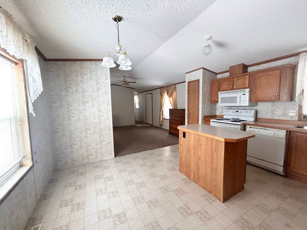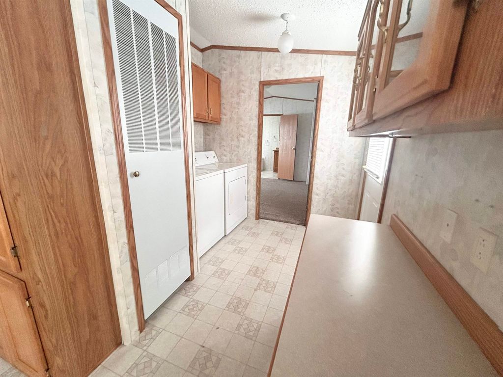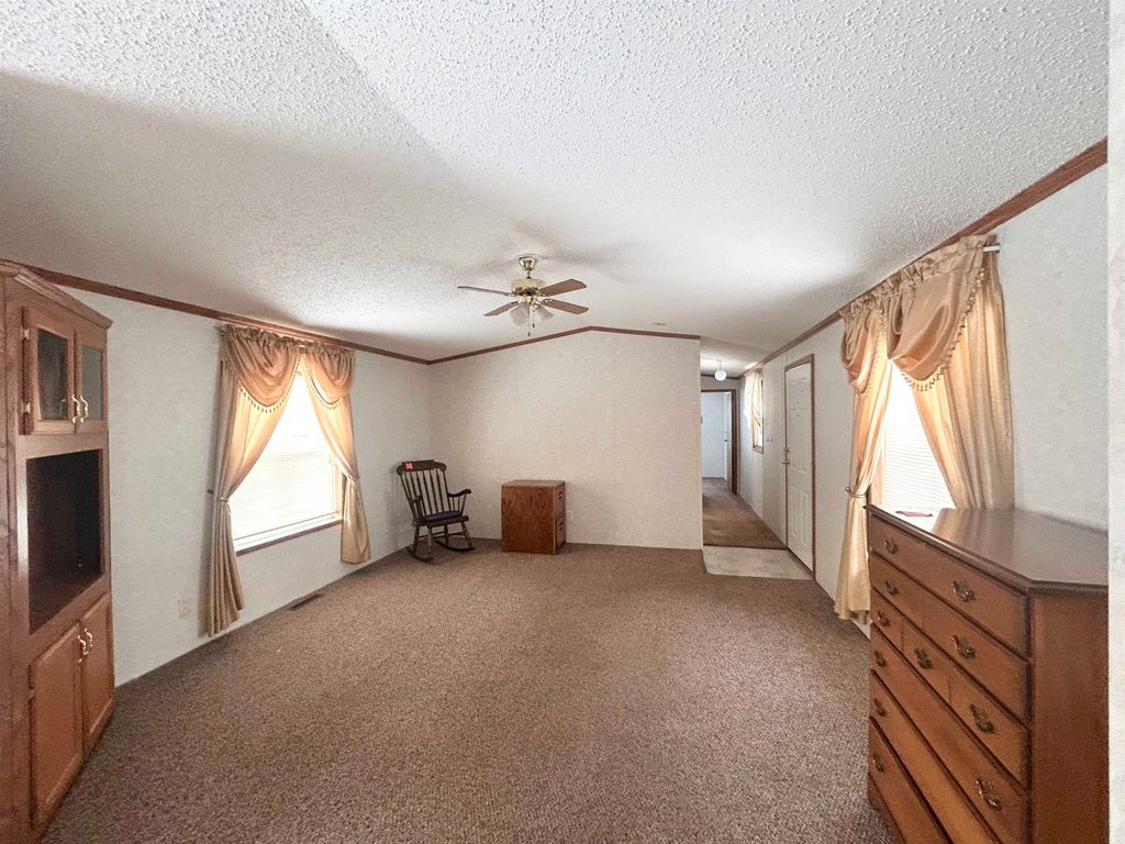 Well-maintained 2004 manufactured home offering comfort, space, and a beautiful natural setting. This extra wide 16x80 home features 3 bedrooms and 2 full bathrooms with a desirable open-concept layout connecting the kitchen, dining, and living areas"”perfect for everyday living and entertaining. The large primary bedroom has it's own ensuite bathroom, complete with soaking tub and walk-in closet. Step outside to enjoy a large deck overlooking a gorgeous, landscaped yard that backs up to the woods, providing privacy and a peaceful backdrop. The property includes two storage sheds, one equipped with electrical service ideal for a workshop or hobby space. A two-stall paved carport adds convenient covered parking. Additional highlights include a newer furnace, excellent overall condition, and established perennial landscaping that adds color and curb appeal throughout the seasons. A wonderful opportunity for affordable living with outdoor space and room to enjoy nature.