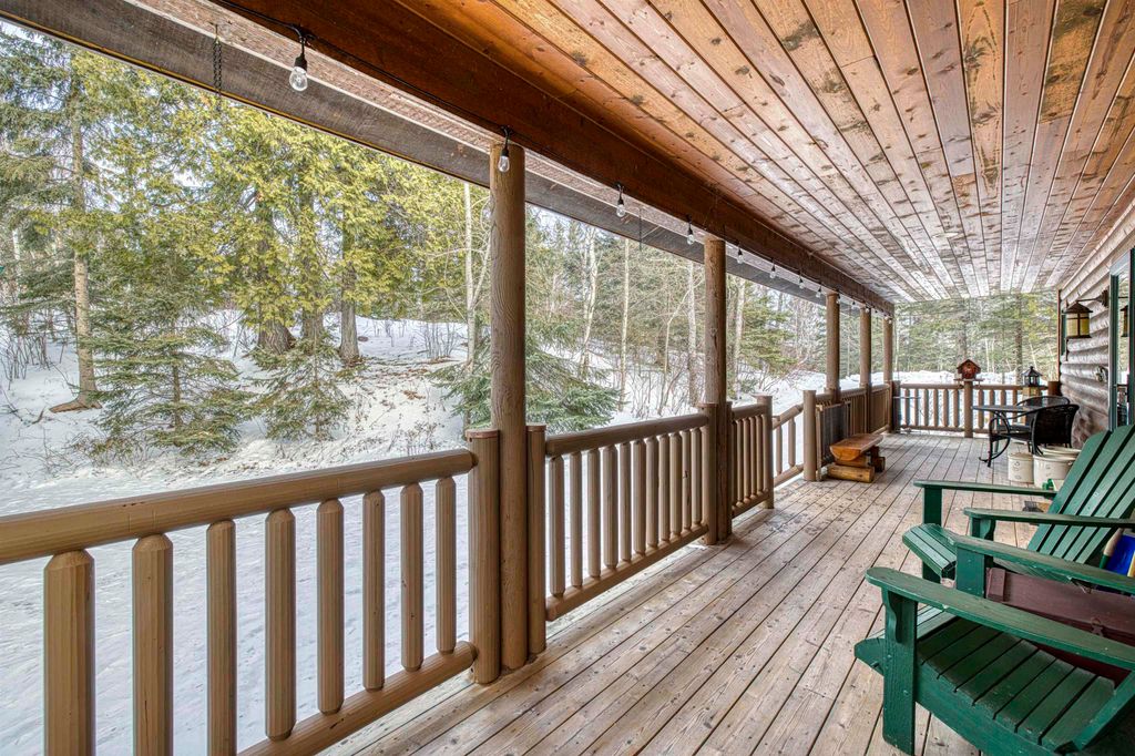 Stunning views of the north woods and the majestic Lake Superior. This is a unique situation where you are part of an HOA, $200/month and it includes, sewer, water, trash, plowing and mowing of common areas. You have joint access to Lake Superior with a boardwalk and stairs. Only 13 homes and this home is amazing with its 3 Bedrooms, 3.5 bathrooms updated kitchen with dining/sitting room facing the lake out the patio doors. Living room has a bank of windows that are floor to ceiling that give you that grand entrance feeling. The upper level has a loft and a custom designed railing situated between the two upper level bedrooms. The lowest level of the house has a nice family room with built in cabinets, a wet bar, bathroom and a walk out to access the sauna! There is a patio to cool off from the sauna and sit and listen to the trees and the Lake. The detached 2 car garage is finishing and the upper level of the garage is finished off as a studio or office, no plumbing but excellent space! There is a new furnace, a generator for the emergency power outage, updated colors, redone hardwood floors, new counter tops, 2 gas fireplaces and a covered front porch to enjoy those warm summer nights. You are at the beginning of the North Shore, you are located very close to Crow Creek hiking trails, Gooseberry State Park, Superior Hiking trail and numerus State Parks!