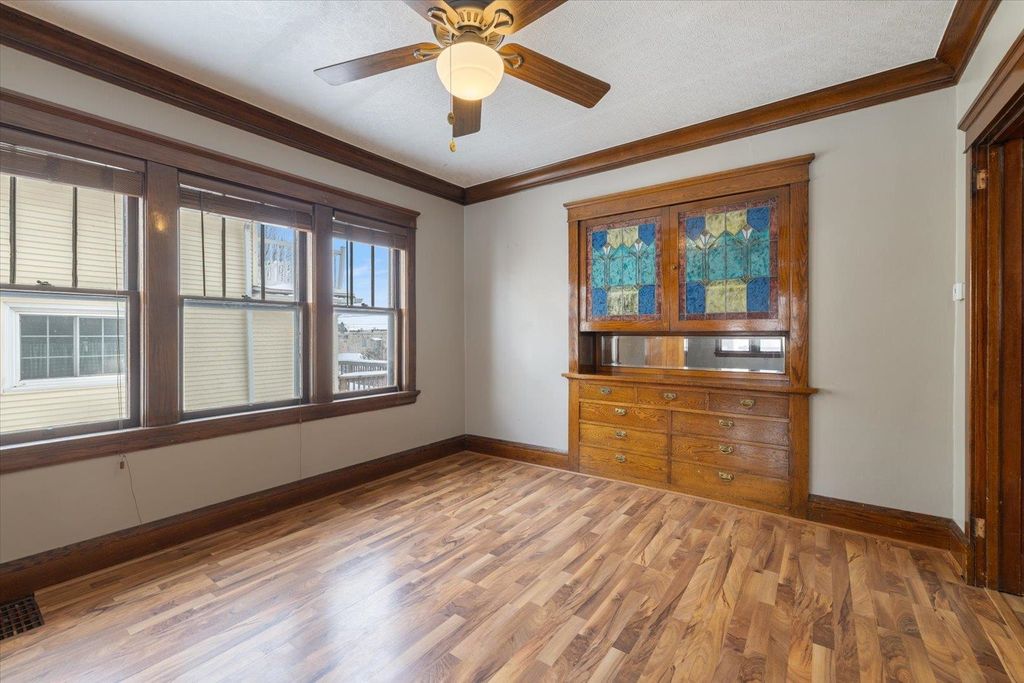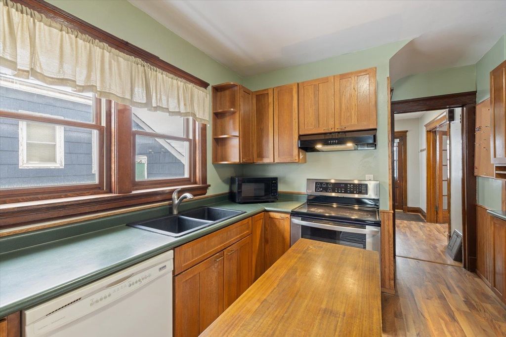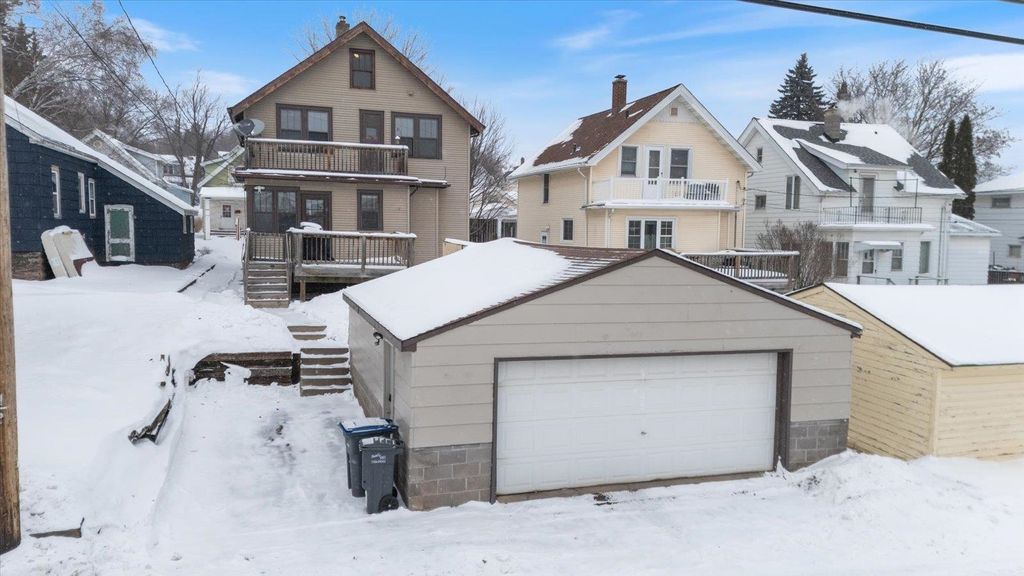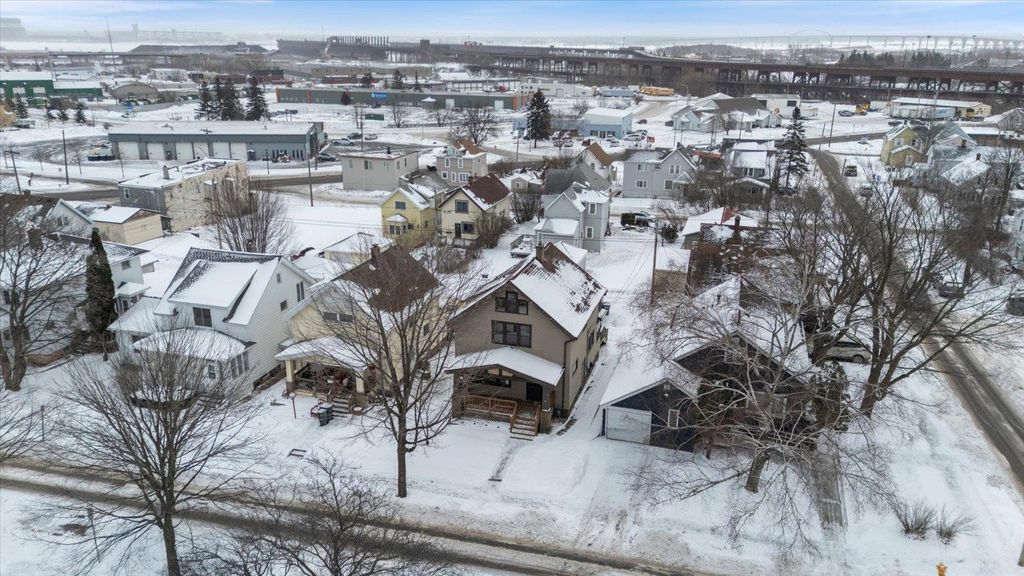 Located just blocks away from the Lincoln Park Craft District, the Superior Hiking Trail, and the Duluth Traverse mountain biking trail, this beautiful and solid traditional home features turn of the century character throughout. This gorgeous home also features natural woodwork including built-in hutches with stained glass, French doors to the living room, a formal dining room, tons of natural light, a lovely kitchen with updated cabinets, a large walk-in pantry, and a stunning wood banister on the wide staircase. Upstairs are 3 good sized bedrooms including a primary with 2 large closets, a balcony off the back, an updated full bath, and a walk-up 3rd story with tons of storage and great potential for more. The lower level is finished and features a rec-room, a large laundry area, a 3/4 bath, loads of storage, and sound mechanicals. There's a new hot water heater (2023), washer (2022), sump pump with lift pump for furnace drain (2022), and refrigerator (2023), plus the forced air gas furnace was new in 2018. The detached 2 car garage features a MyQ Smart garage door, and there's a nice back deck off of the rear mudroom. You'll love the location, which is near the bus line, Wheeler Field and Wade Stadium, Duluth Heritage Center, Lincoln Park Middle School, and an abundance of Duluth's best restaurants, shopping, and breweries. This home also has a current rental license providing a nice income opportunity as well. Affordability and quality meet at this wonderful move-in ready home.
