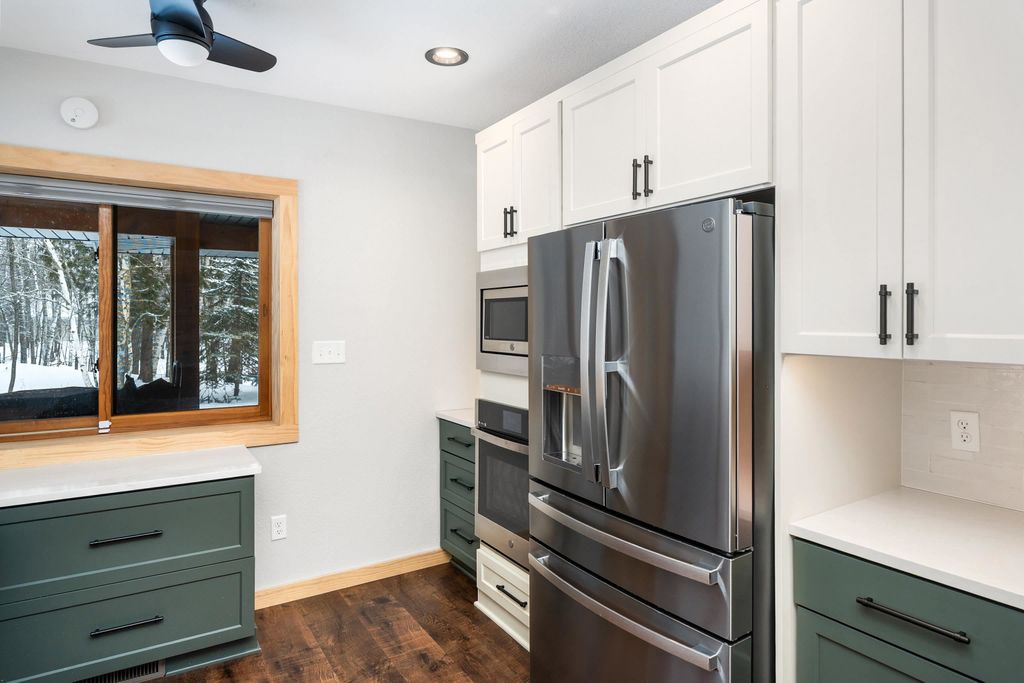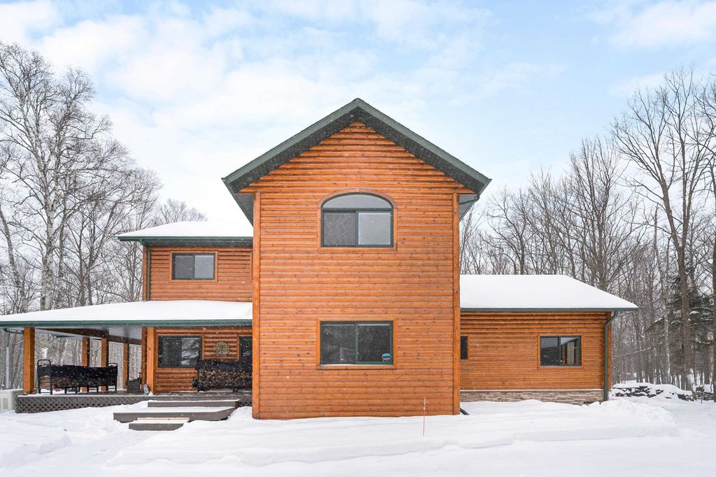 Welcome to this stunning completely renovated 1950 split log-sided home, perfectly situated on a spectacular 2.28-acre corner lot near Pike Lake! Walk into what is like owning a BRAND NEW HOME! Every room has an update or a remodel throughout! With 4+ bedrooms, 3 baths, 3 fireplaces, 2 Primary Bedrooms (one on the main level!) and 2 decks... this home has it all! Step inside to a brand new, high-end kitchen featuring quartz counters, custom cabinetry, and premium appliances "” ideal for the inspired home chef! Every detail is here from the custom farm sink, roll out drawers, pasta filler, organizing station...Also, on the main level, enjoy a newly remodeled pantry across from the kitchen! A surprisingly open floor plan with so much to offer with a formal dining area, formal living room, rec room with wet bar area near sliders to the deck! The main floor ensuite is perfectly situated for a guest suite or your private corner of the house! Upstairs, you'll find another ensuite bedroom, vaulted and updated! A spacious rec area with an attached office or bedroom is bright and inviting. The finished lower level offers even more room to relax, play, or host guests with fireplace, game area and flex space. So much is new with flooring throughout the main level, a brand new tankless water heater, paint, some carpet, toilets... THIS IS A MUST SEE! Another bonus is the oversized 3-car garage providing space for vehicles and hobbies alike. Truly a home you have to view to appreciate! What a location, What a HOME! With 4+ bedrooms, stunning finishes, and a private, wooded setting "” this property captures the best of Pike Lake living: peaceful, spacious, and absolutely move-in ready!
