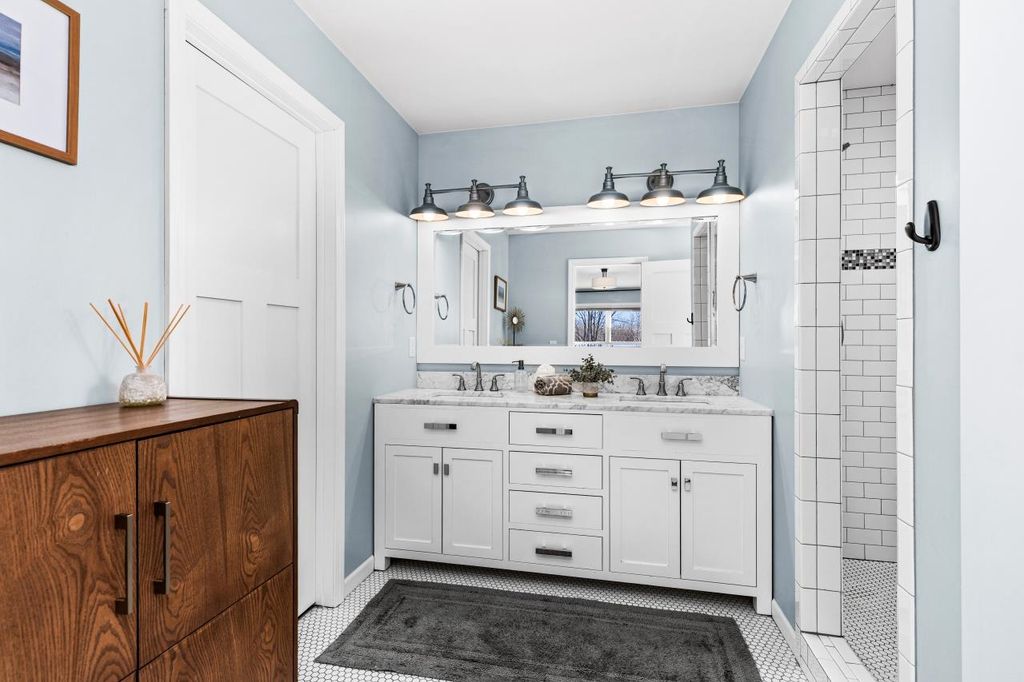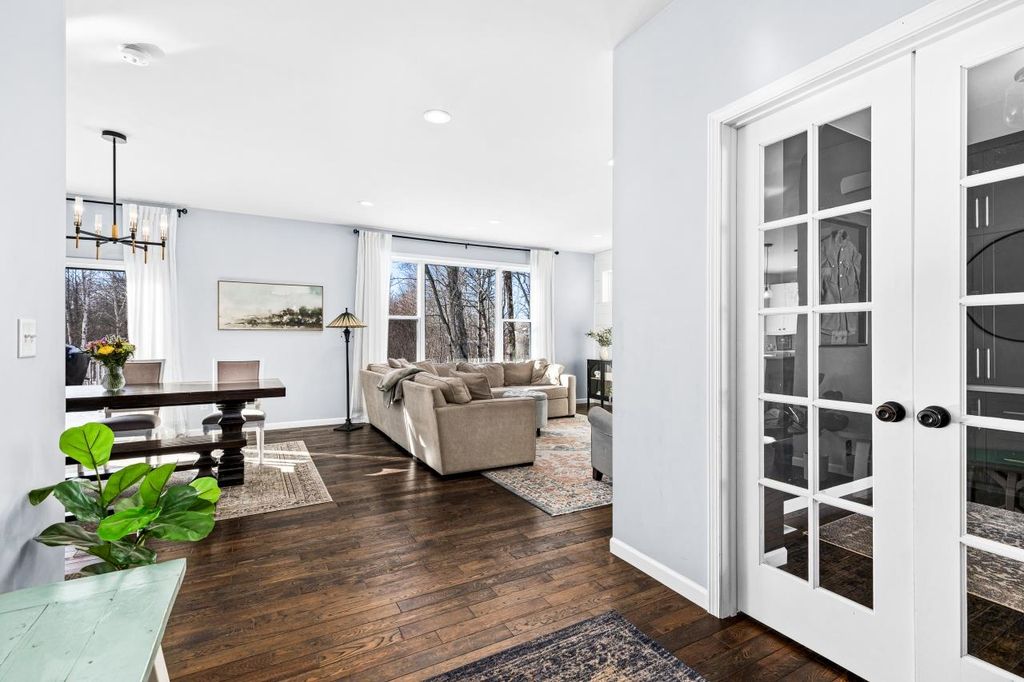 Location, location, location! This exceptional 5 bedroom, 4 bath home is perfectly situated in Hermantown's highly sought after Maple Village neighborhood. This spacious traditional-style home offers three levels of thoughtfully designed living space filled with today's most desirable features. The sun filled main level showcases an open floor plan with large windows, a gourmet kitchen featuring quartz countertops, stainless steel appliances, and a center island with breakfast bar, along with a generous dining area and a cozy living room with gas fireplace. Also on the main level are a half bath, welcoming foyer, mudroom off the garage, and a private den"”ideal for a home office or quiet retreat. The upper level features a stunning primary suite with a walk-in closet and a ¾ bath complete with dual sinks and walk-in shower, plus three additional spacious bedrooms, a laundry room, and a full bathroom. The lower level impresses with a beautiful family/rec room, an additional bedroom, a newly remodeled ¾ bathroom, and ample storage. Additional highlights include oak hardwood floors throughout the main and upper levels, a large back deck overlooking the landscaped backyard, and a heated 3 car attached garage with extra-deep stalls and 11 foot ceilings. Central air, air exchange, paved streets, and sidewalks add comfort and convenience, all just minutes from Hermantown schools, the mall area, and downtown Duluth.