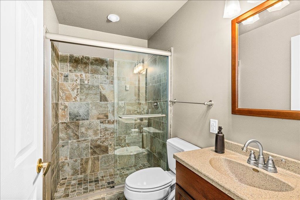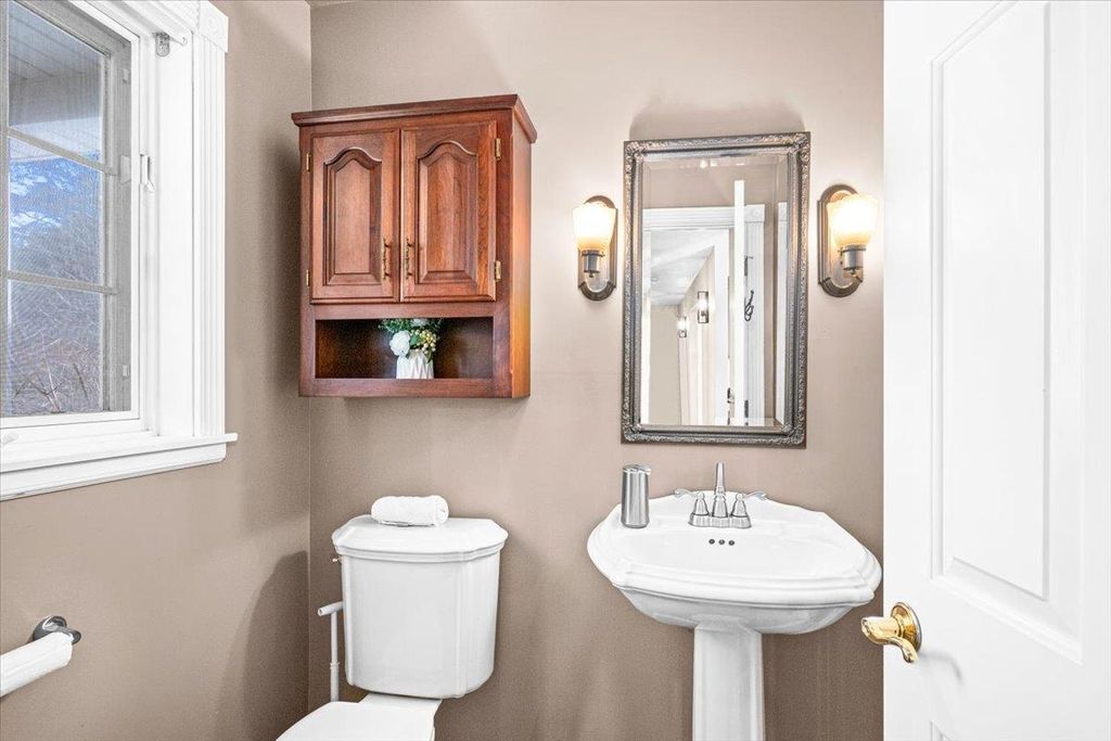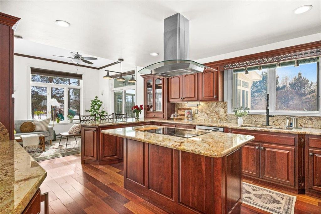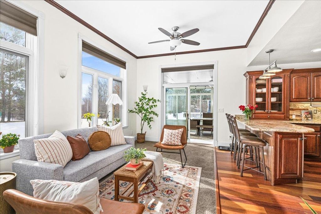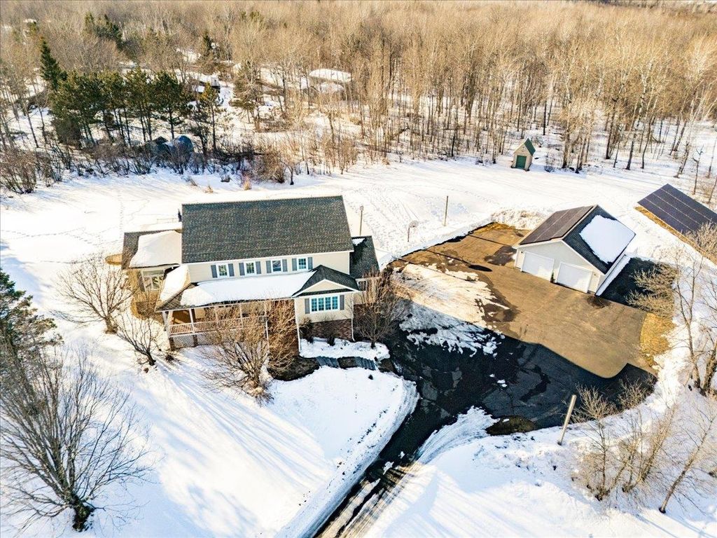 Exceptional Hermantown traditional on nearly 5 private acres! Perched high at the end of a secluded driveway, this stunning 4-bed, 5-bath home delivers space, sophistication and serious lifestyle appeal. A classic wraparound front porch sets the tone, leading into a soaring vaulted entry filled with natural light. Designed for both entertaining and everyday comfort, the main floor features multiple living spaces, including a living room with gas fireplace, a cozy great room with pellet stove, and a spectacular four-season room with wall-to-wall windows and access to an outdoor entertaining area. The kitchen boasts granite counters and backsplash, custom cherry cabinetry, a center island, breakfast bar, double ovens, and induction cooktop. Working from home? A spacious main-floor office easily accommodates multiple workstations. The primary suite is tucked into its own wing and offers a large walk-in closet, soaking tub, tiled walk-in shower, and slider leading to a private deck. Upstairs you'll find 3 generously sized bedrooms, 2 full baths and laundry. The lower level is pure versatility: newly designed gym, wet bar, theater room, multi-purpose flex space, ¾ bath, and mudroom"”ready for workouts, movie nights, and game days. Exterior highlights include an attached 2-car garage with EV charger, detached 2+ car garage, shed, raised gardens, maintenance-free siding and decking, ample parking, and 60 solar panels for SIGNIFICANT energy savings. Secluded. Thoughtfully designed. Exceptionally functional. A rare Hermantown retreat that truly checks every box.