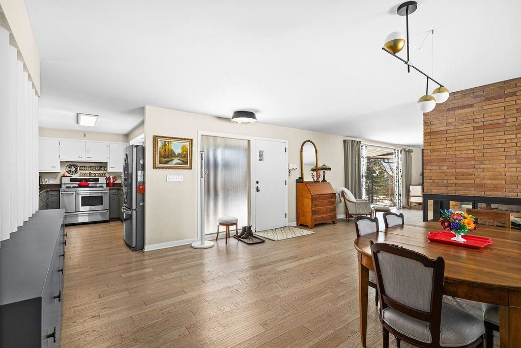 Welcome to this sprawling 1950s midcentury modern ranch in Congdon area of Duluth"”just minutes from Lake Superior, top-rated schools, shopping, restaurants, the Lakewalk, and nearby parks. This beautifully updated 4-bedroom, 3-bath home blends timeless character with modern comfort. Step inside to find new engineered wood flooring, a spacious living room centered around a striking three-sided fireplace, and almost all new windows that fill the home with natural light while improving efficiency. The private primary suite features its own ensuite bath, offering a quiet retreat at the end of the day. Downstairs, you'll love the expansive rec room"”perfect for gatherings, hobbies, or movie nights"”complete with a three-quarter bath for added convenience. Also a new Genorac back up generator was recently installed as well. Outside, the wooded lot provides privacy and a peaceful setting, with a secluded pond that enhances the natural beauty of the property. Mature trees and thoughtful updates throughout make this home truly move-in ready. If you're looking for space, style, and a prime location near everything Duluth has to offer, this midcentury gem delivers.