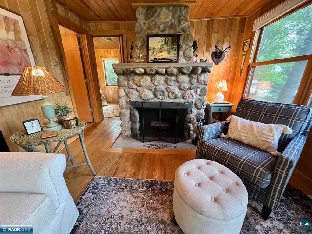 Northwoods Lakefront Retreat - 2BR/2BA Updated Cabin! Enjoy classic Northwoods charm with modern updates in this beautifully maintained 2-bedroom, 2-bath lakefront cabin. Warm tongue-and-groove ash paneling and hardwood floors create a cozy, up-north feel, while the remodeled kitchen features new appliances, porcelain sink, and updated finishes. Recent improvements include new roof, new deck, new washer/dryer, and updated baths with walk-in showers and luxury vinyl flooring. Mudroom offers extra storage and additional refrigerator"”perfect for lake life. Located right at the water's edge with stunning lake views. Community amenities include 800' of sandy shoreline, spa building, boat slip, shared well & septic, 10x40 garage space, lawn care, and more. Turnkey Northwoods getaway"”furnishings negotiable