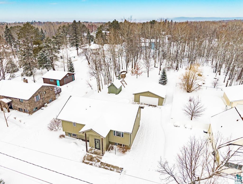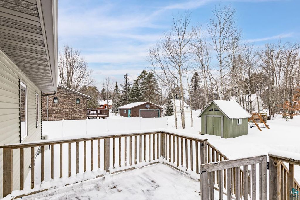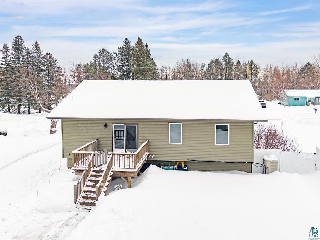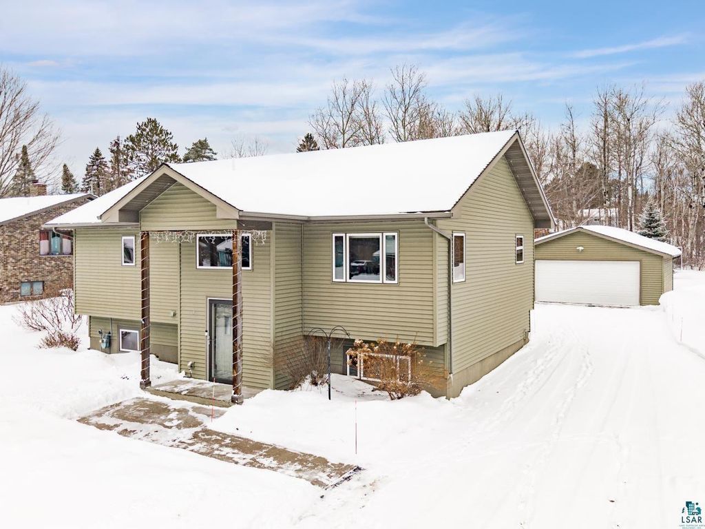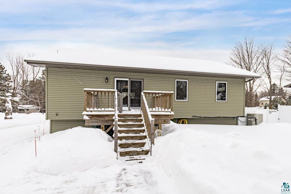 A rare opportunity to own a newer construction, 4-bedroom, 3-bath home set on a level, partially wooded lot of over half an acre in the sought-after Duluth Heights neighborhood. Known for its larger lots and peaceful setting, this location offers the perfect balance of privacy and convenience"”just minutes from the shopping, dining, and everyday amenities of the Miller Hill area, including Costco and more. This gorgeous and unique split-entry home welcomes you with an expansive foyer, vaulted ceilings, and an open-concept layout ideal for both daily living and entertaining. The kitchen features custom cabinetry, stone countertops, and a large center island, while the dining room patio door opens to a spacious deck overlooking the impressive backyard. The outdoor space is truly special, offering a fire pit area, children's playset area, abundant green space, and a wooded backdrop that provides privacy and room to roam. Under the winter snow lies beautiful landscaping, along with six professionally installed helical piers already in place to expand the deck the full length of the home. The main level includes two bedrooms and two bathrooms, highlighted by a spacious primary suite complete with a walk-in closet and private full bathroom. The lower level features a cozy family room with a stunning stone gas fireplace, a custom mini bar perfect for entertaining, two additional generously sized bedrooms, a full bathroom, and a laundry/utility room. Don't overlook the top-of-the-line Anderson windows, central air, new carpet in the basement, an insulated and heated two-car detached garage, storage shed, and wood shed. Homes offering this combination of space, quality, lot size, and location are exceptionally rare. Offer deadline of 6:00PM March 1st!