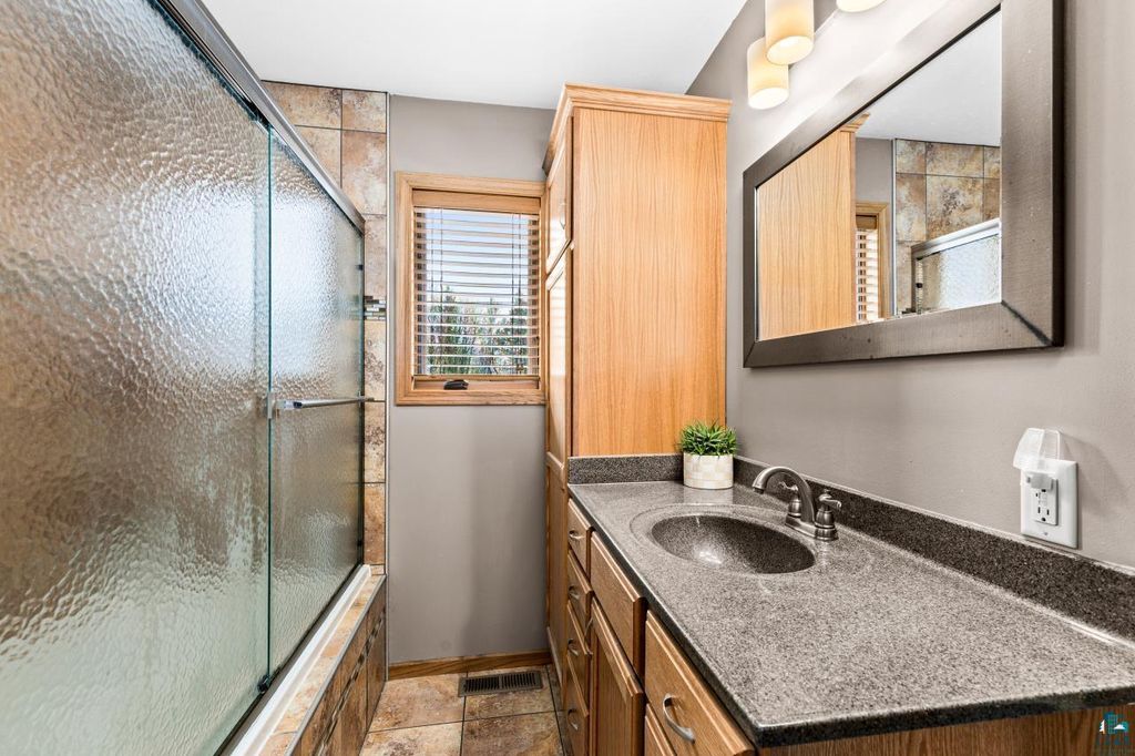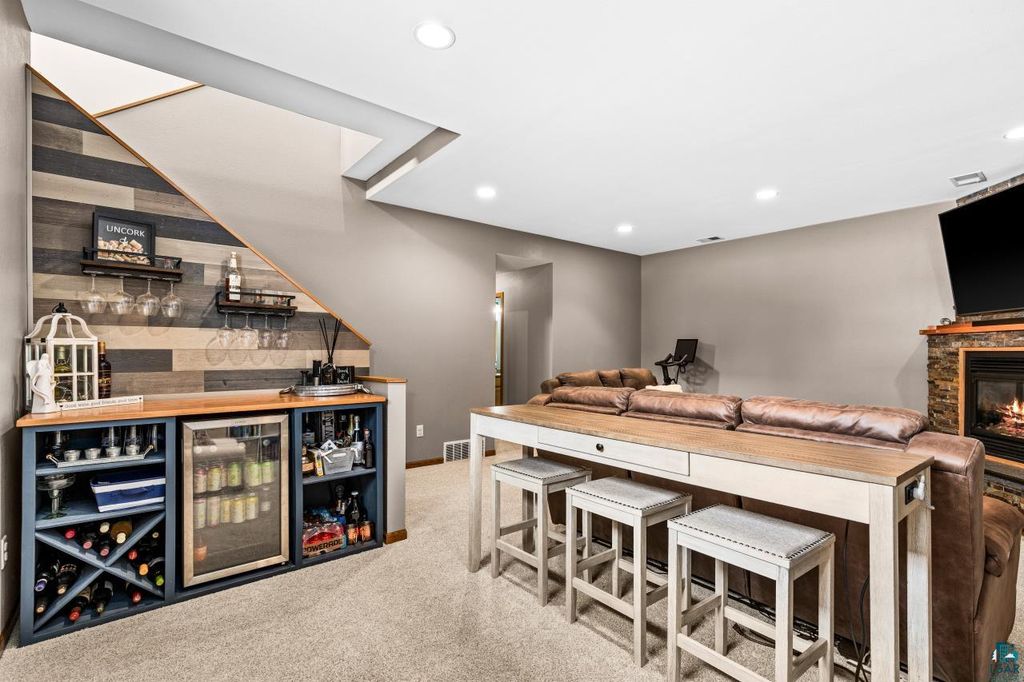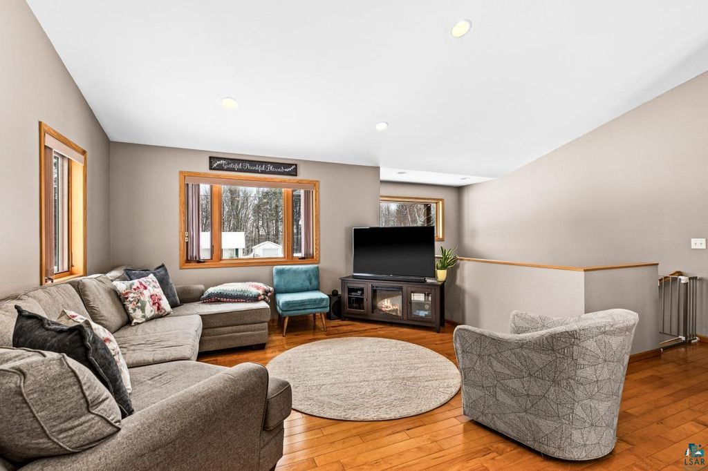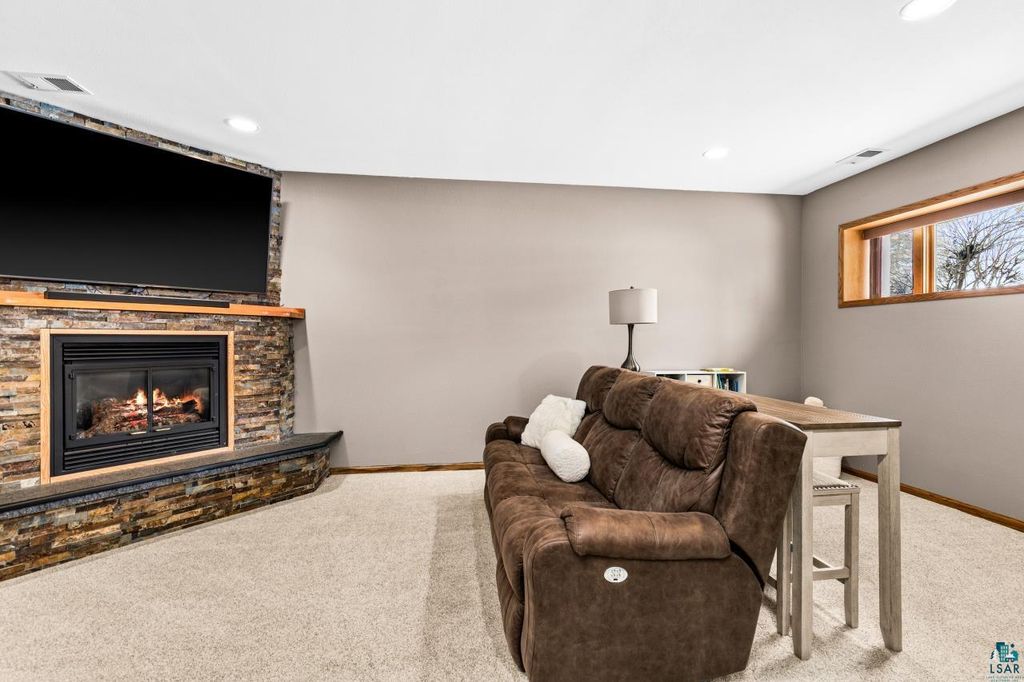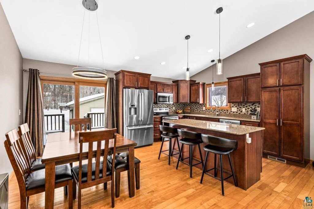 A rare opportunity to own a newer construction, 4-bedroom, 3-bath home set on a level, partially wooded lot of over half an acre in the sought-after Duluth Heights neighborhood. Known for its larger lots and peaceful setting, this location offers the perfect balance of privacy and convenience"”just minutes from the shopping, dining, and everyday amenities of the Miller Hill area, including Costco and more. This gorgeous and unique split-entry home welcomes you with an expansive foyer, vaulted ceilings, and an open-concept layout ideal for both daily living and entertaining. The kitchen features custom cabinetry, stone countertops, and a large center island, while the dining room patio door opens to a spacious deck overlooking the impressive backyard. The outdoor space is truly special, offering a fire pit area, children's playset area, abundant green space, and a wooded backdrop that provides privacy and room to roam. Under the winter snow lies beautiful landscaping, along with six professionally installed helical piers already in place to expand the deck the full length of the home. The main level includes two bedrooms and two bathrooms, highlighted by a spacious primary suite complete with a walk-in closet and private full bathroom. The lower level features a cozy family room with a stunning stone gas fireplace, a custom mini bar perfect for entertaining, two additional generously sized bedrooms, a full bathroom, and a laundry/utility room. Don't overlook the top-of-the-line Anderson windows, central air, new carpet in the basement, an insulated and heated two-car detached garage, storage shed, and wood shed. Homes offering this combination of space, quality, lot size, and location are exceptionally rare. Offer deadline of 6:00PM March 1st!