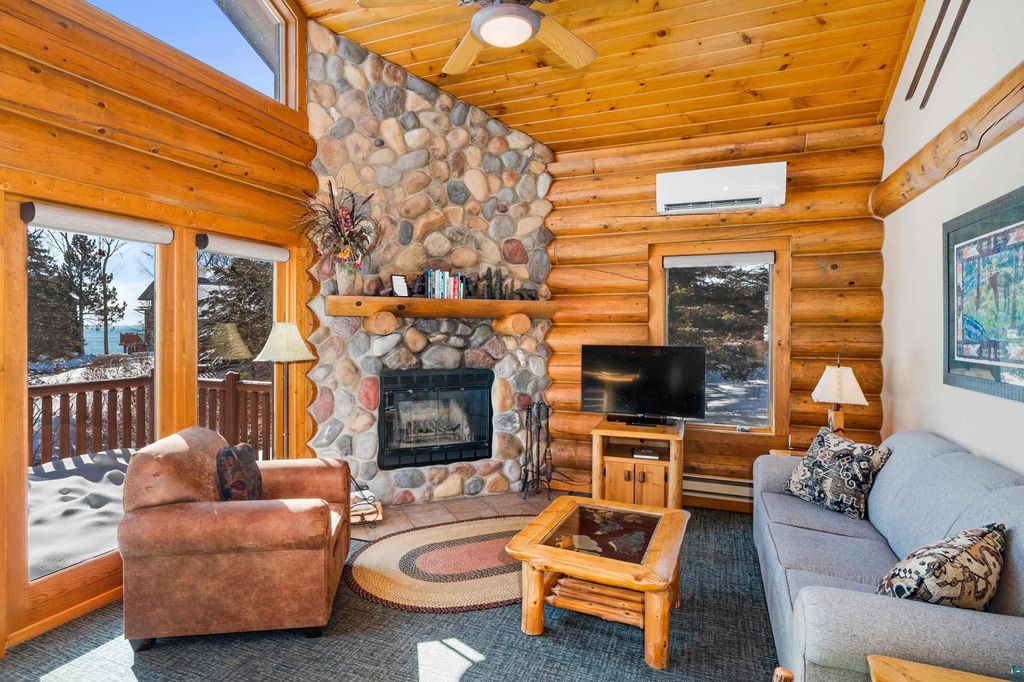 This single-level luxury log cabin is the North Shore escape you've been dreaming of. Set farther back from the lake, it offers a peaceful, more private setting "” away from shoreline activity "” creating a quiet retreat where you can truly relax and unwind. Built with high-quality log construction and classic Northwoods charm, the cabin features vaulted ceilings, an open floor plan, and large windows that bring in natural light with beautiful glimpses of Lake Superior. The full kitchen flows comfortably into the main living space, ideal for entertaining or simply putting your feet up after a day exploring the Shore. A private primary suite, second bedroom, two baths, and a whirlpool tub provide plenty of space and comfort for you and your guests. Step outside onto the deck and enjoy the calm, wooded surroundings "” perfect for morning coffee or an evening glass of wine. Located within the upscale and established Grand Superior Lodge, and part of the trusted, award-winning Odyssey Resorts brand, this fully furnished cabin offers a truly maintenance-free ownership experience. Owners also have access to an optional rental program designed to help offset the costs of vacation home ownership "” making this an easy and enjoyable way to own on the North Shore.