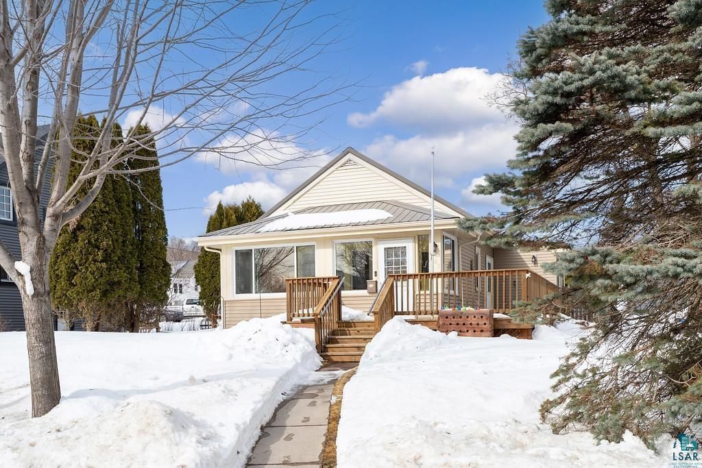 Open House: Thursday March 5th from 4:30pm-6:00pm- tentative offer deadline Friday March 6 at 3pm-Over lapping showings allowed Agents please use showingtime Charming 2 bedroom, 2 bath home with a 2 car garage located just 8 blocks from the Lakewalk. This well-maintained property offers a fenced backyard complete with a dog house and spacious decks wrapping around two sides of the home, perfect for relaxing or entertaining. The kitchen features a farmhouse sink, beautiful countertops, and newer appliances. Updated lighting fixtures highlight the character of the ceilings throughout the home. The tiled bathroom includes a walk-in shower with glass surround. A sunny front porch provides additional living space and is naturally warmed by sunlight. The lower level offers excellent storage and flexibility. Additional features include a gas furnace, steel roof, and all appliances included. The attached garage accommodates two vehicles comfortably. Utilities based on one occupant average approximately: MN Power $55/month, Water $13/month, Sewer $13/month, Gas $41/month. Utility costs will vary by usage. Property taxes for 2025 were $3,180. 2026 tax amount to be determined. DBS has completed the basement system for you to enjoy a dry basement.