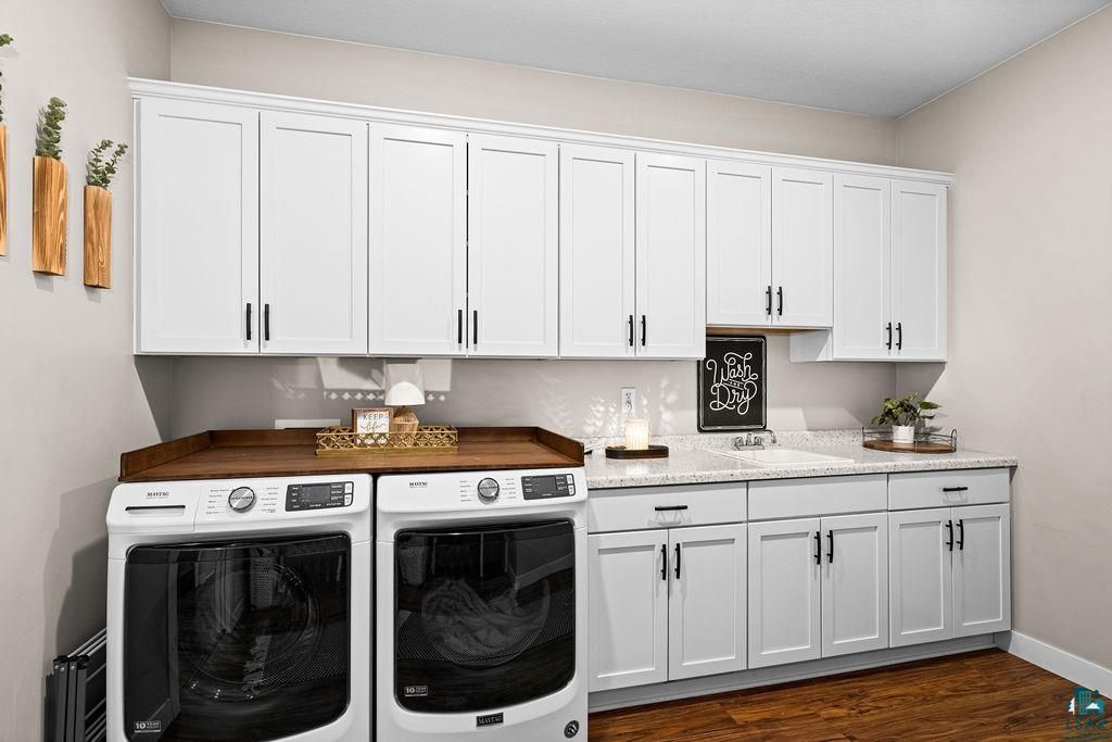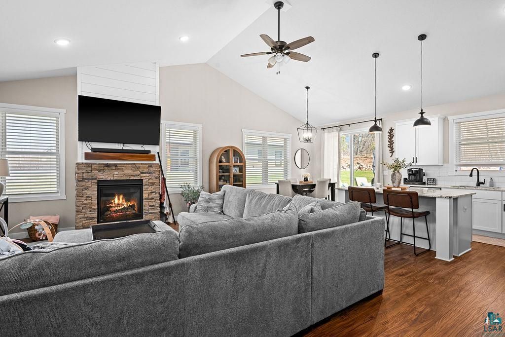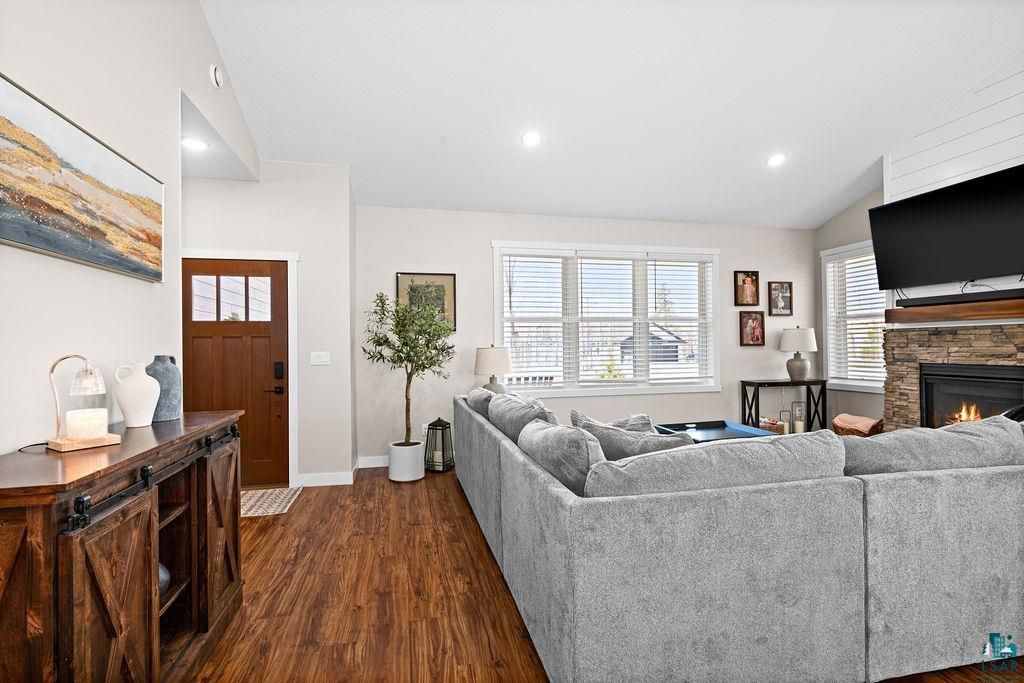 Perfectly situated at the end of a quiet cul-de-sac in one of Hermantown's most desirable newer developments, this meticulously maintained 4-bedroom, 2.5-bath home offers the ultimate blend of convenience and comfort. Just minutes from Hermantown Community Schools, the Essentia Health & Wellness Center, the YMCA and the Hermantown Hockey Arena, this location is hard to beat. Step inside to a spacious, thoughtfully designed layout featuring in-floor heating, a cozy gas fireplace, and a new mini split with heat pump in the primary suite, offering personalized heating and cooling year-round. The heart of the home is the custom kitchen, outfitted with quartz countertops, stainless steel appliances, a generous island, and abundant storage - perfect for both everyday living and entertaining. The primary suite is a true retreat with a large bedroom, dual-sink vanity, quartz countertops, and a walk-in tiled shower. A functional mudroom/laundry area includes built-in cabinets and lockers to keep things tidy. Outside, enjoy a private backyard oasis ideal for gatherings, complemented by an attached heated two-car garage, a newer storage shed, and recently improved landscaping and lot grading to enhance both aesthetics and drainage. Don't miss this opportunity to own a move-in-ready home that checks every box - style, space, and a prime location!